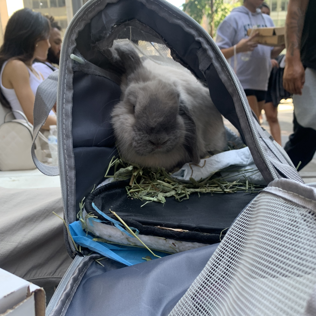 이날 날씨가 너무 더워 우리는 센트럴 파크에 가는 중간중간 쉬어갔는데, 이날 옆자리에서 만난 토끼친구가 더위를 잠시나마 잊게 해 주었다. Bruny는 고향에서 토끼를 꽤 많이 기르기 때문에 토끼 주인과 대화거리가 많아 보였다.