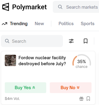 지금 내가 글을 쓰고 있는 한국 기준 6.23 오후 9시 시점에서 폴리마켓의 1위 핫이슈 건을 보면.