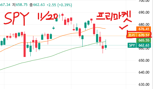 아래는 SPY 차트이다. 이 글 작성하고 있는 프리마켓 시간 기준, 미국 지수는 다시금 60일 이동평균선을 상회하는 움직임을 보이고 있다.