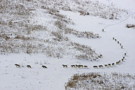늑대 무리가 먼 거리를 이동할 때, 리더 수컷은 대열에서 위험에 가장 크게 노출되는 끄트머리 자리를 여정 내내 고수한다.