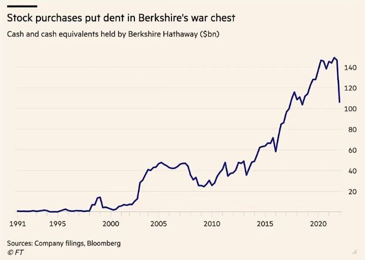어제 그렇게 장이 오른 후, 뒤늦게서야 오늘 버크셔 헤서웨이의 현금 비중량을 파악해 봤는데 역시나 버핏&멍거 듀오는 바쁘게 움직이고 있었다.(90대의 나이지만 지금도 날아다닌다. 찰리 멍거는 99세다.)