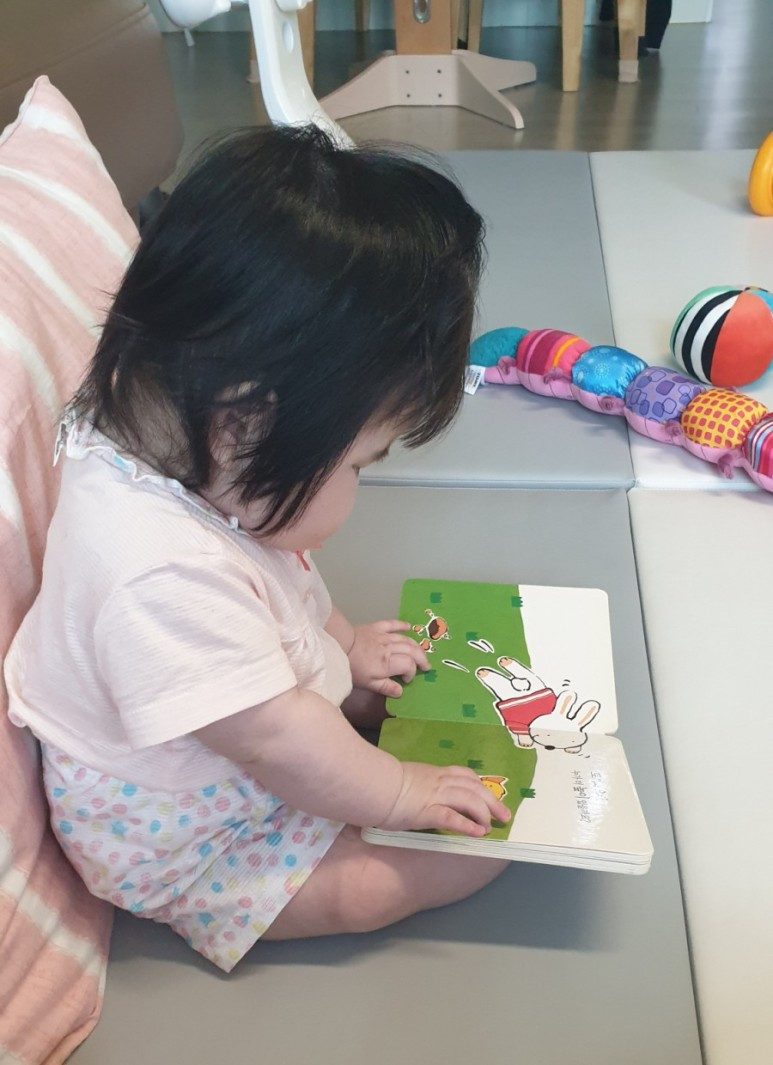 돌 전의 아이는 교사 시절에도 만나본 적이 없고 상담 연령도 아니기 때문에 자료를 찾아보고 배워가며 양육했습니다. 노래도 자주 불러주고 책도 열심히 읽어주었으며 말이 통하지 않는 아이에게 이런저런 얘기를 많이 들려주었습니다. 그래서인지 방문 선생님께서 청각이 발달했다고 얘기해주며 좋은 평가를 받기도 했습니다.