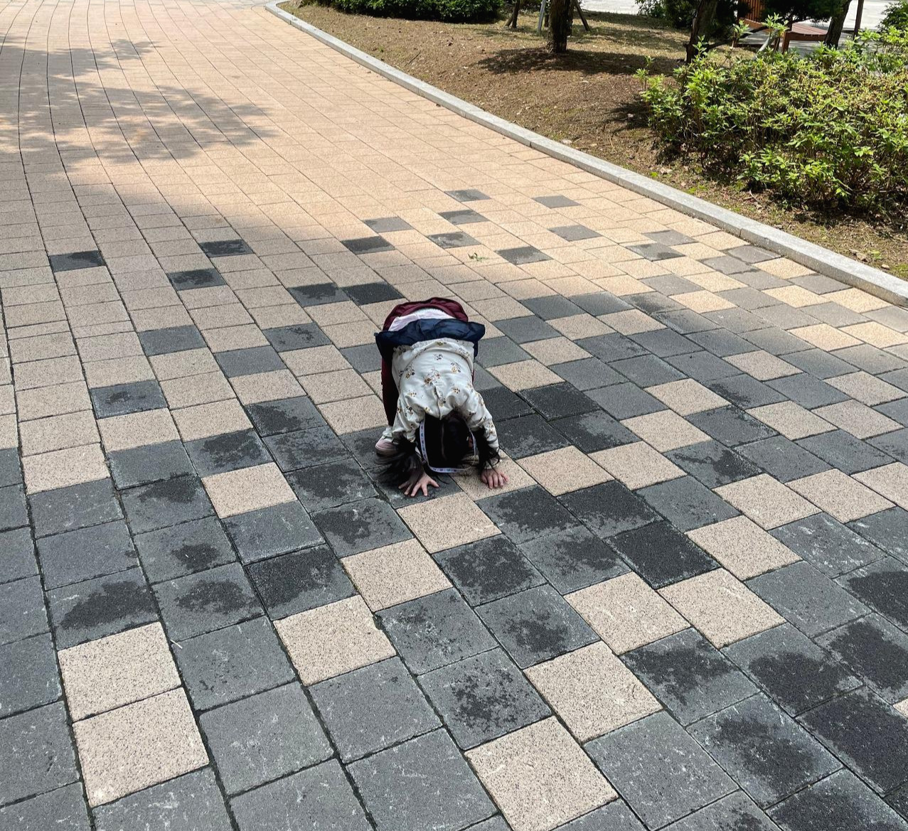 자기주장이 강해지기 시작하며 바깥 활동을 하다가 마음에 들지 않으면 소리를 지르며 바닥에 드러눕기도 하고 바닥을 데굴데굴 굴렀습니다. 바깥 바닥에서 굴러다니는 아이가 내 아이라니 믿을 수가 없었습니다.