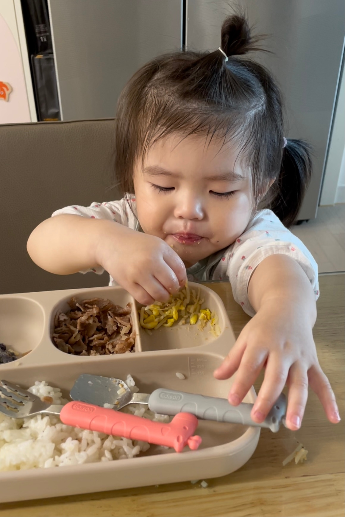 다만 잘 먹지 않아 식습관이 걱정되었지만 특별히 가리는 음식이 없었고, 식탁의자에도 30분 정도는 거뜬히 앉아 수저 사용에도 관심을 가졌기에 문제가 되지는 않을 거라 생각했습니다.