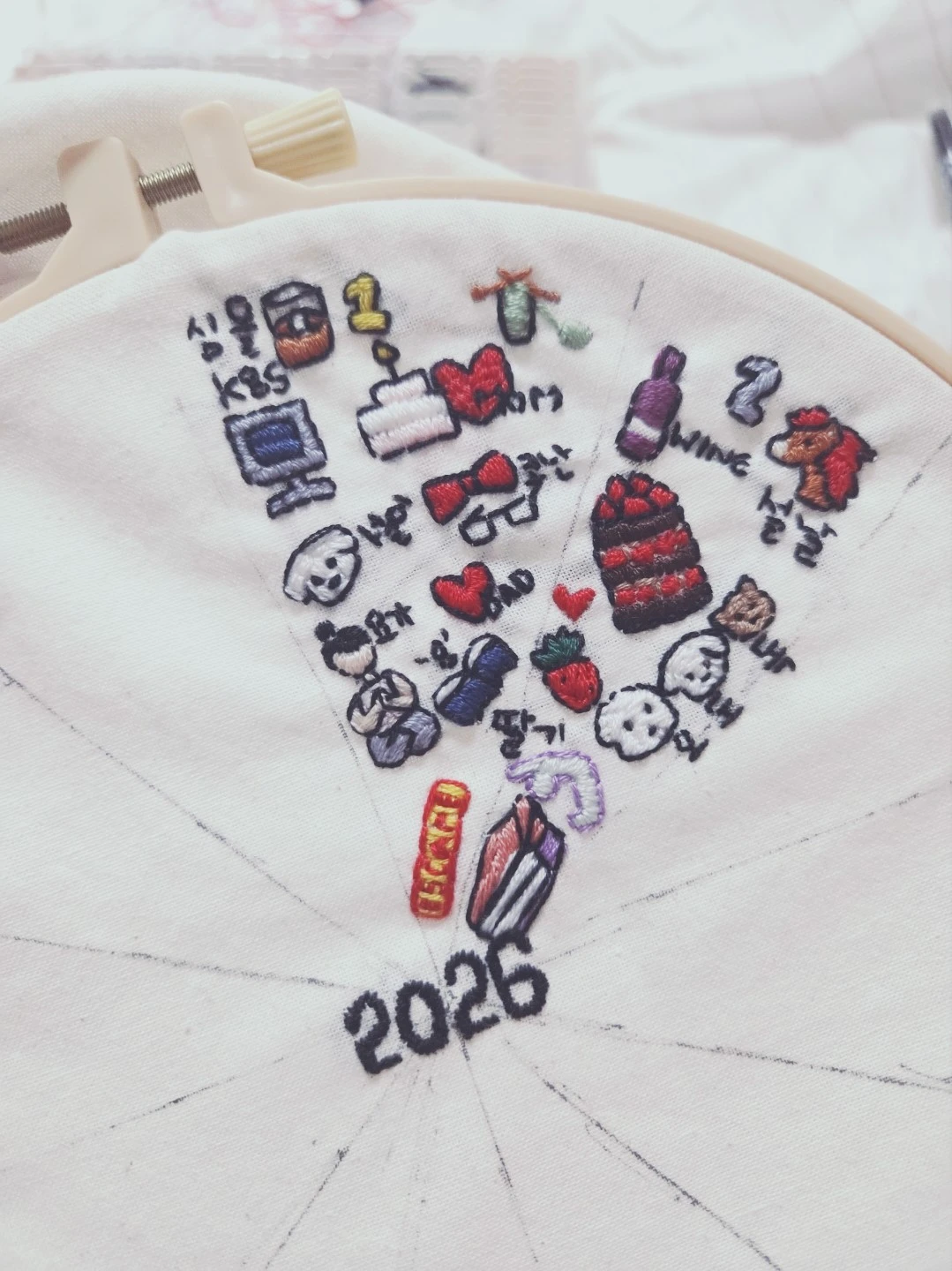 천에 한 땀 한 땀 기록해야 하는 자수에는 기쁜 일만 새기고 싶은 내 무의식일까. 아니면 일기에 슬픔을 털어 넣고 남은 것은 기쁜 기억들뿐인 걸까.