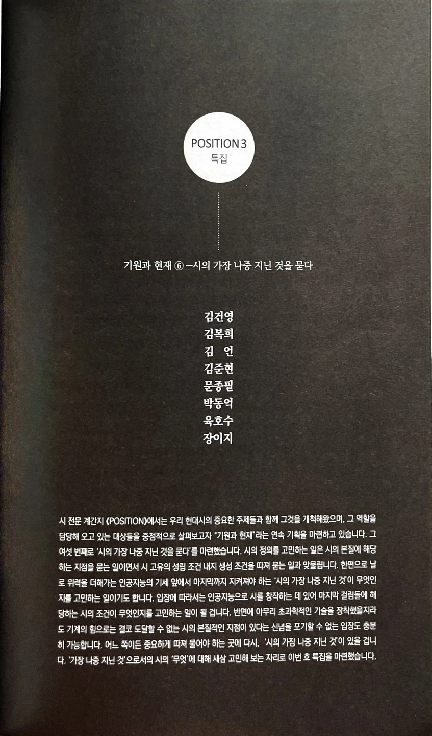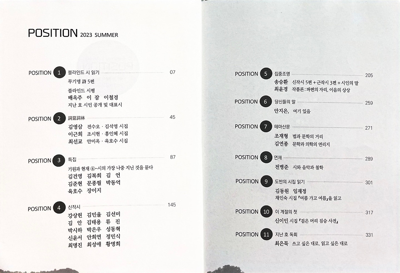 문학 계간지 [포지션] 특집 2023년 여름호