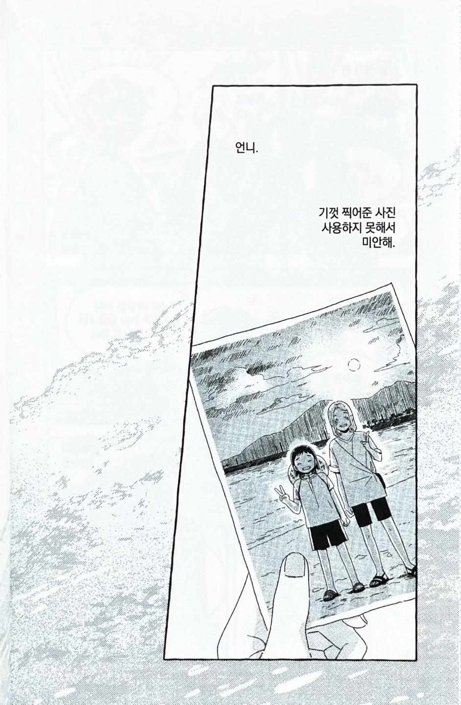 다래는 보성에서 지낸 1달을 오래도록 기억한다. 자신보다 8살이나 많은 이모 녹음과 만났었고, 이모의 가슴 아픈 사연을 당시에는 모두 헤아릴 수 없었지만, 그녀가 어떤 심정이었는지 이 만화는 처음부터 끝까지 연출해 낸다. 이 연출 기법을 탐닉하는 것이 만화가 오묘의 이야기를 탐닉하는 재미이기도 하겠다. 무엇보다도 보성에서 만났던 다래와 녹음은 무의식적으로 서로를 의지했던 것으로 짐작된다. 아빠가 없는 차다래의 엄마는, 이녹음의 상황과 크게 다르지 않았기 때문이다. 그래서 복합적인 감정을 품고 있었던 녹음은 그날의 경험을 오래도록 품는다. 그러다 시간이 많이 흘러 다래가 “엄마 대신 갔던 친척의 결혼식”(11)에 오게 되고, 그곳에서 다시 이 두 명은 만나게 된다. 그때 연락처를 주고받으며 밥 한끼 먹자는 약속을 하는데, 다래는 조금은 어색했는지 연락을 받지 않는다