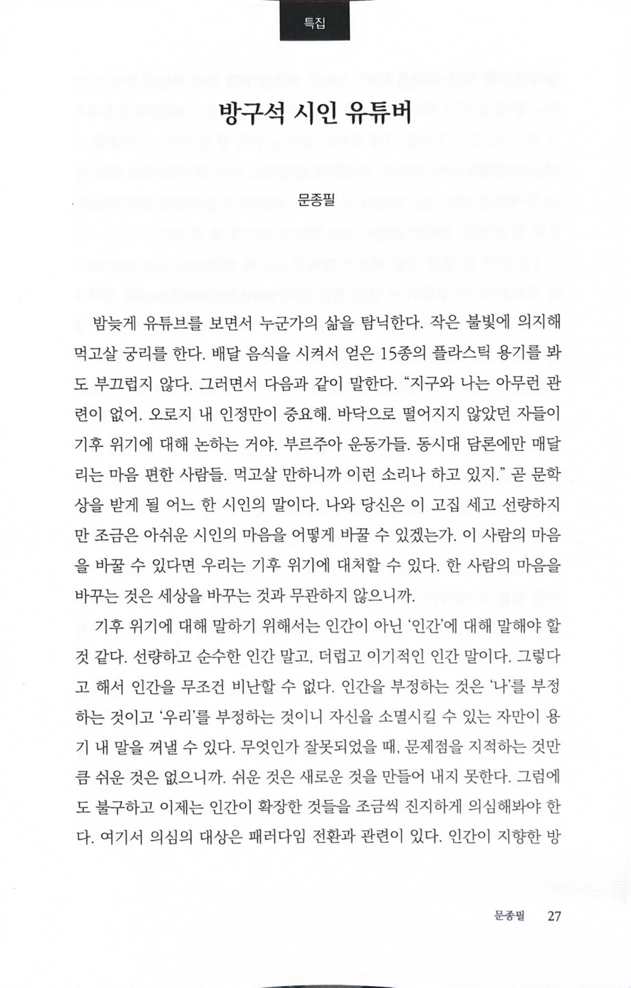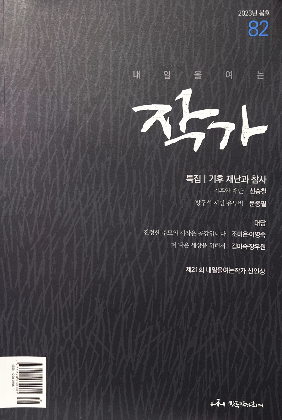 * <내일을 여는 작가> 82호(2023년 봄호)-[특집]-기후 재난과 참사- 「방구석 시인 유튜버」, 27~33쪽.