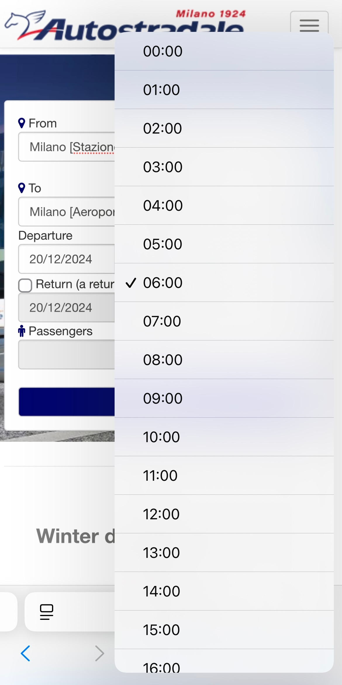 오토스트라데일 사이트에서 예약을 하는데 30분마다 있다는 버스시간이 예약 화면에서는 매시 정각만 보였다.