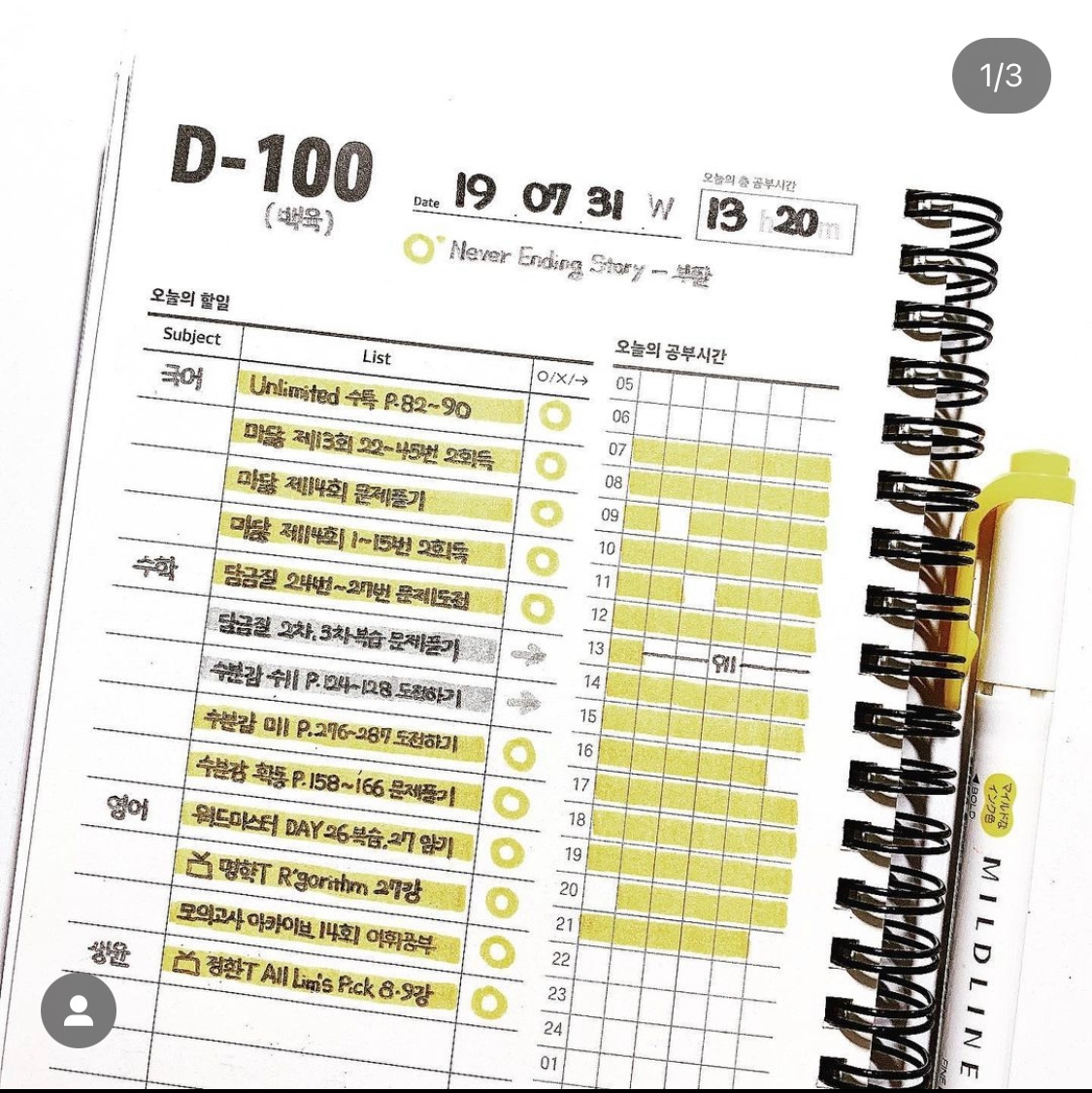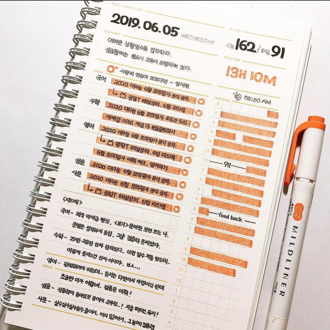 매일 강의 듣는 시간부터 그날그날 과목별로 진도 나갈 책 페이지까지 상세하게 기록하고,