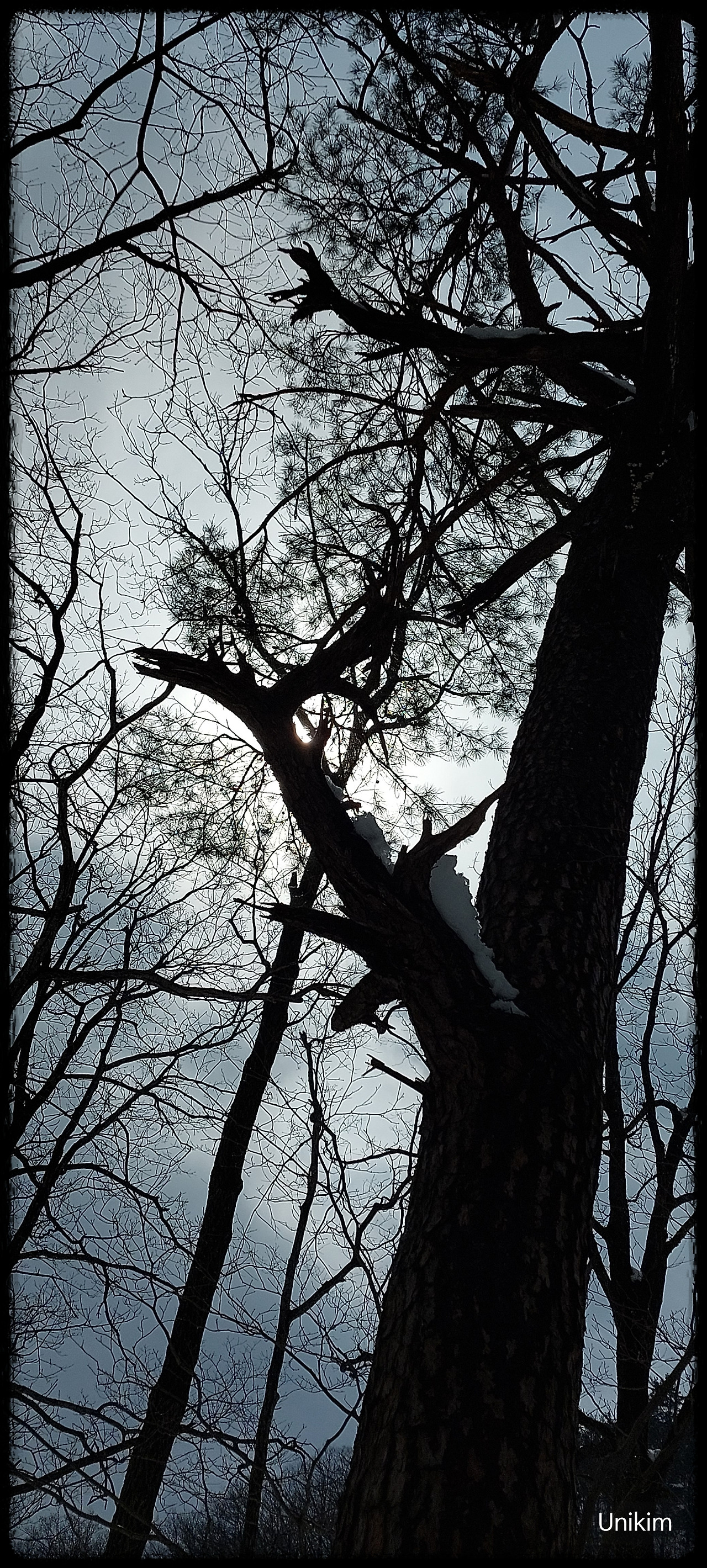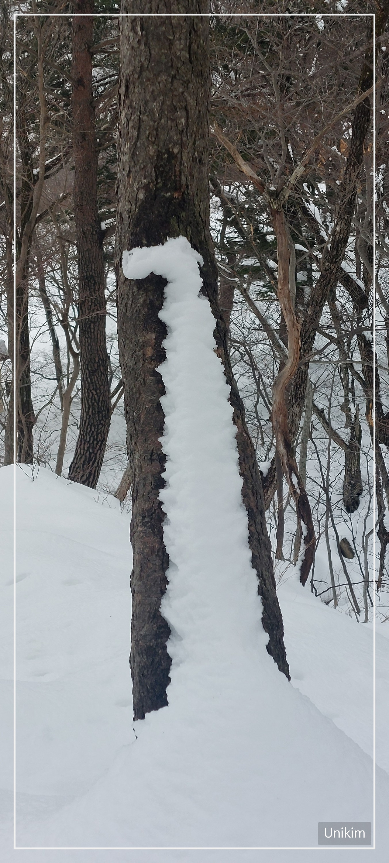 눈 덮인 겨울 산속 앙상한 나무들이 마치 프린세스처럼 단정하게 자리를 지키고 있었다. 마치 머리를 잘 빗겨 놓은 듯 고요하고 우아한 자태로 자리하고 있었는데 그 모습이 너무 정갈하고 품위 있어 보였다.