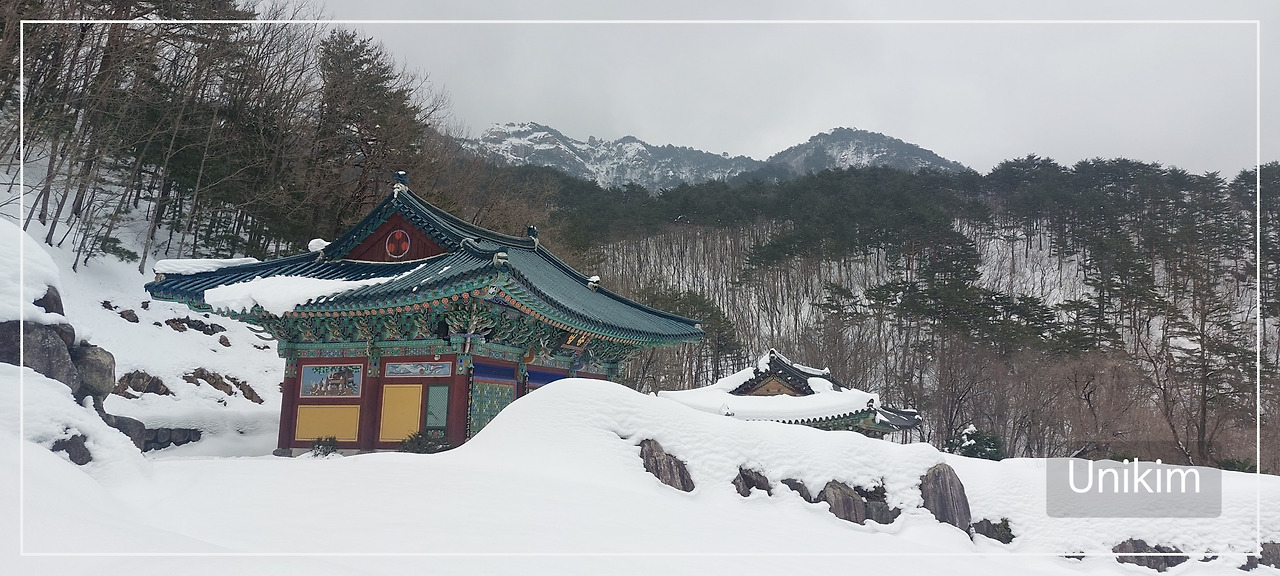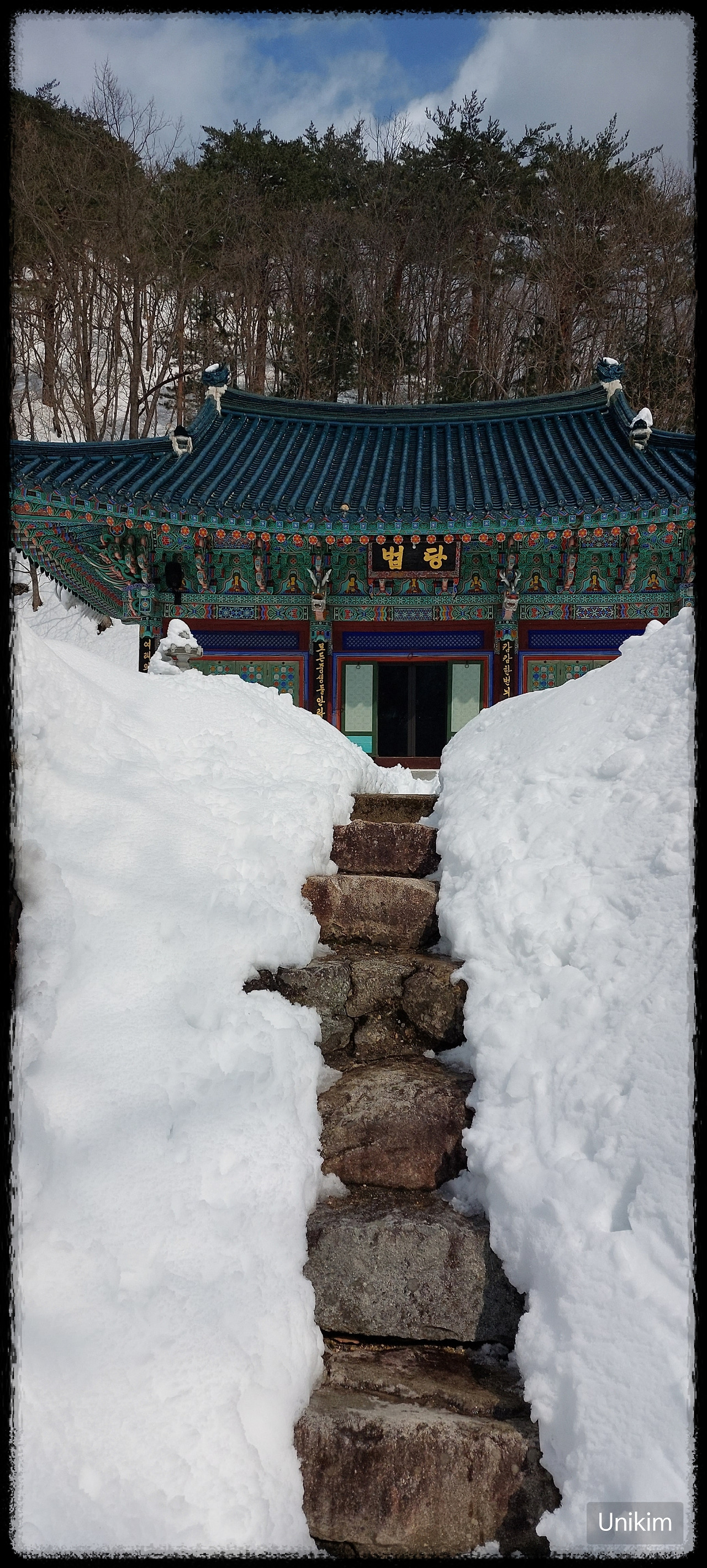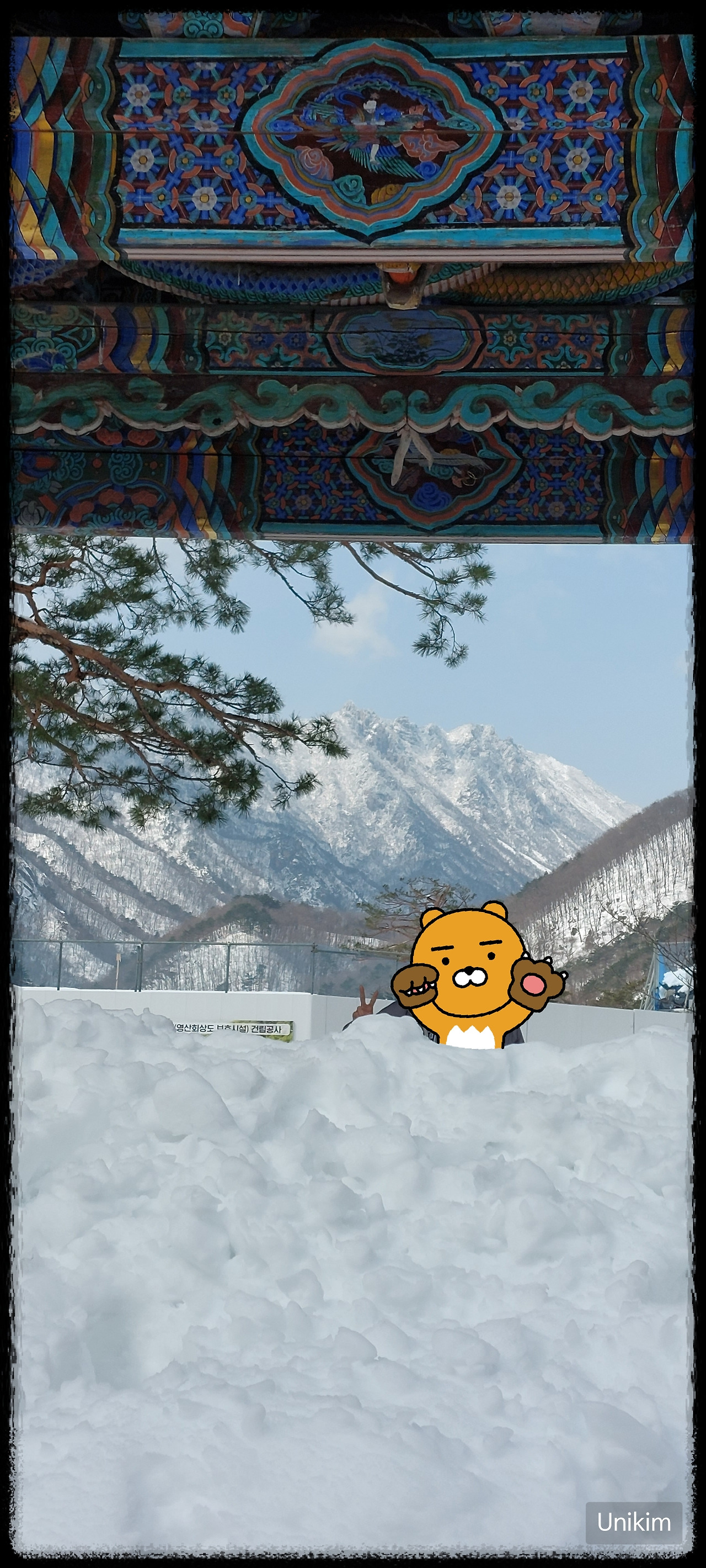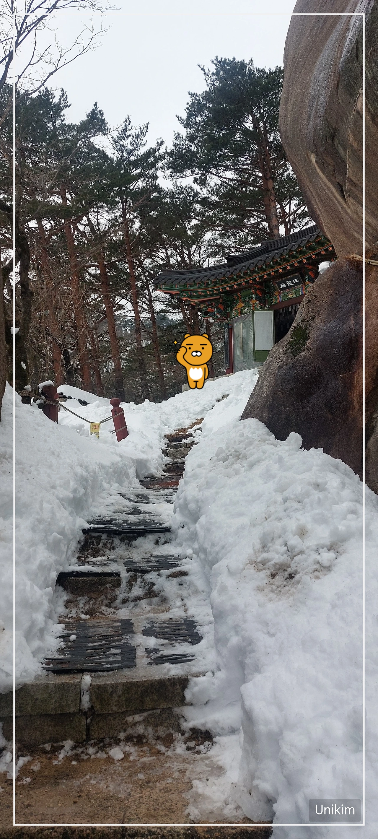 이곳에서 예쁜 추억 담고 법당 앞에 섰는데 갑자기 드는 생각^^ '눈이 이리 많이 왔는데 울산 바위에 오를 수 있다고? 아니 아니 그건 너무 위험해.'