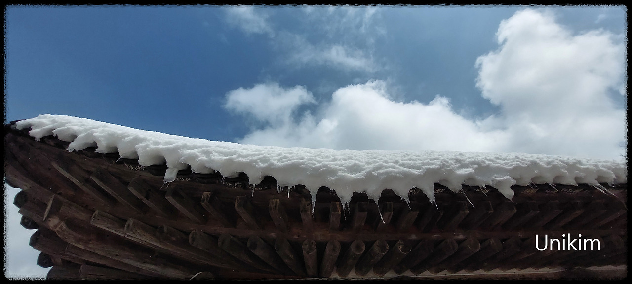 이곳엔 상가마저도 고풍스러운 전각에 자리 잡고 있었다. 그 전각 위에도 눈이 쌓였고 그 눈이 녹고 얼기를 반복하여 고드름을 열었다. 마치 겨울의 숨결처럼 여러 줄기의 얼음이 땅을 향해 길게 뻗어 나갔다.