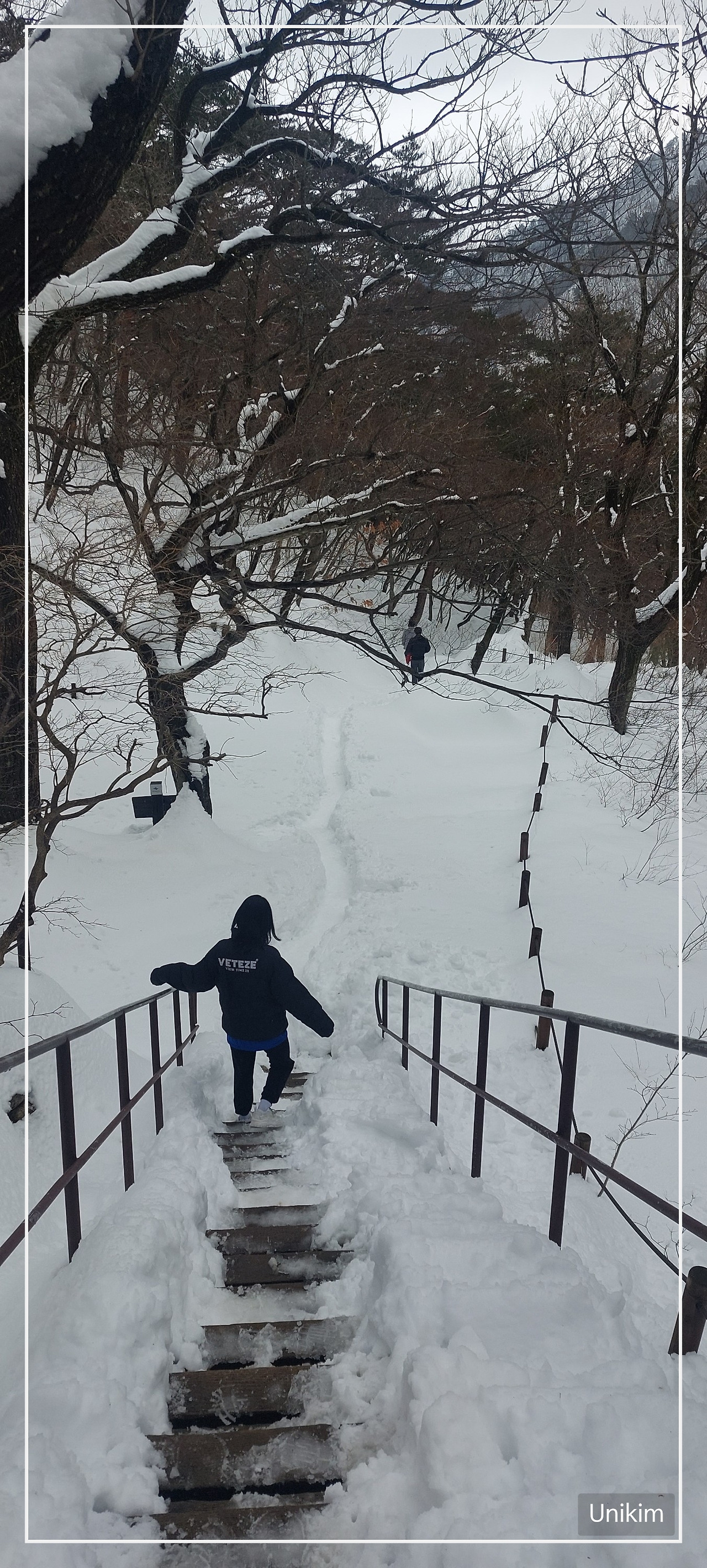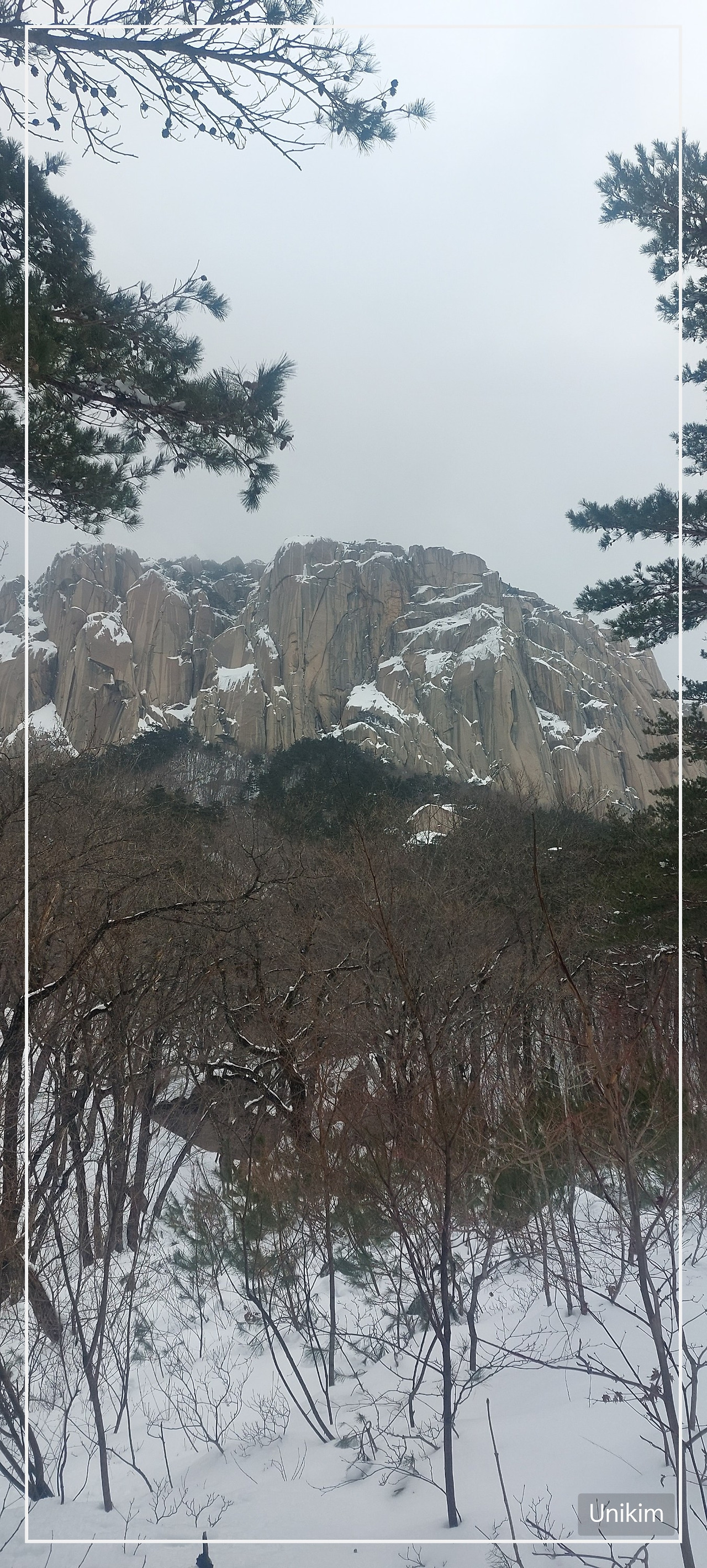 살포시 미소가 지어졌다. 차가운 공기 속에서도 마음 한 편은 따스했다. 많은 눈으로 인해 비록 울산 바위까지 오르지는 못했지만 오늘 이곳에서 마주한 풍경과 감동은 오래 기억될 것이다.