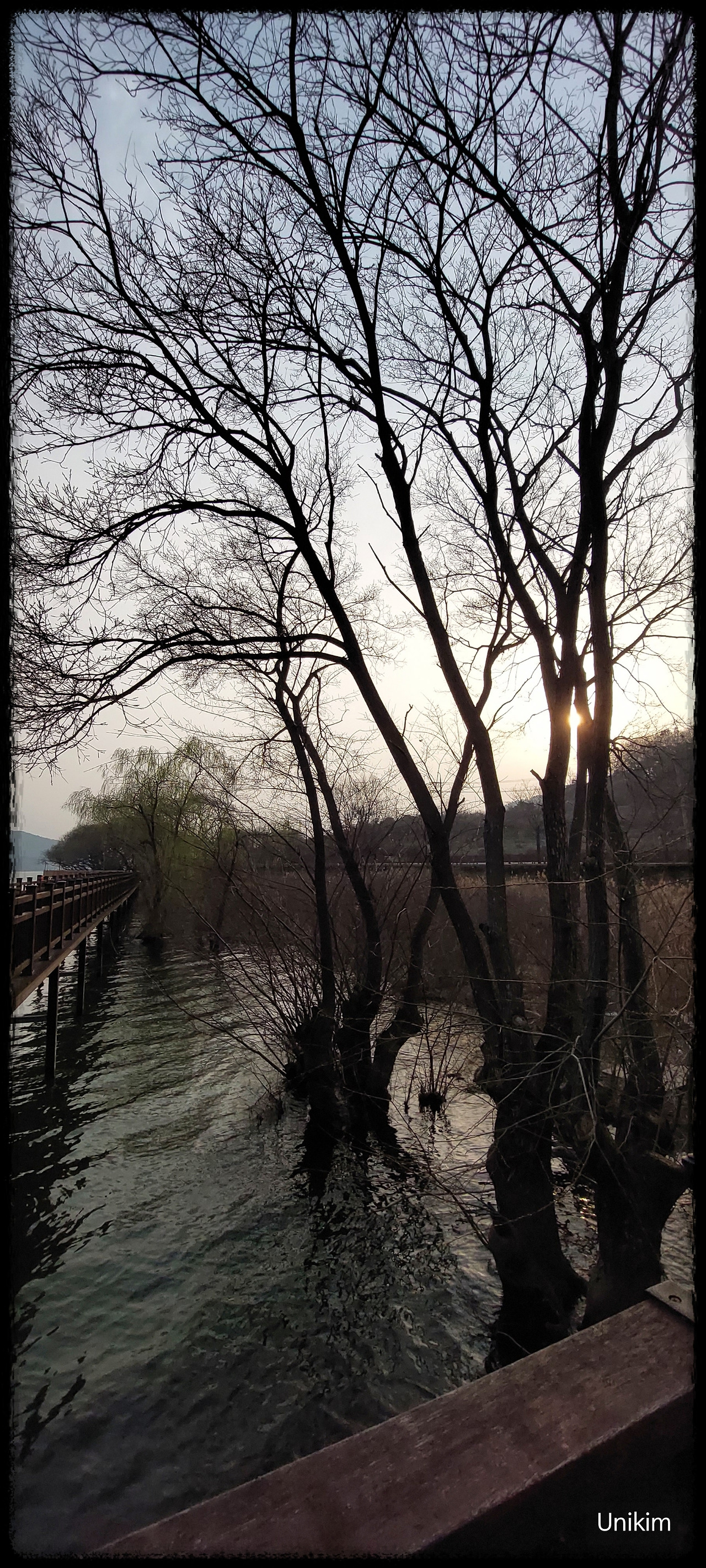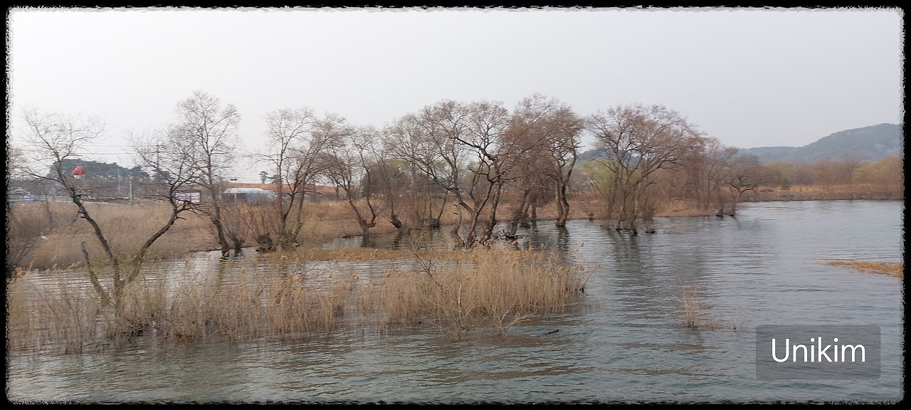 논산 탑정호는 넓고도 깊은 매력을 간직한 곳이었다. 우리는 탑정호의 아름다움을 만끽하고자 길을 나섰고, 도착한 곳은 딸기향 농촌 테마공원 앞쪽에 위치한 데크였다. 그곳에서 호수를 바라보며 호흡을 가다듬었고 넓은 호수를 둘러보았으며 사진을 찍고, 바람에 실려오는 물 내음을 느꼈다. 그리고 신비스러운 나무들을 보았다. 어떻게 나무가 물속에 뿌리를 두고 물속에 서 있을 수 있는 걸까?!! 신기해서 이리 보고 저리 보아도 물 안에서 자라는 나무가 맞다. 허허 참 신비하다^^