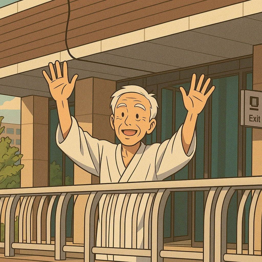 어느새 나와 난간에서 손을 흔드시는 아버지