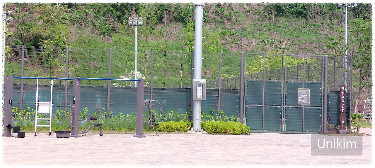 이미 많은 사람들이 이 공간을 즐기고 있었습니다. 축구장에선 시합이 한창이었고, 테니스장은 예약제로 운영되고 있는 듯했습니다. 야외에 탁구대도 마련되어 있고, 운동기구들도 군데군데 자리하고 있어서 다양한 운동을 즐기기 좋아 보였습니다.