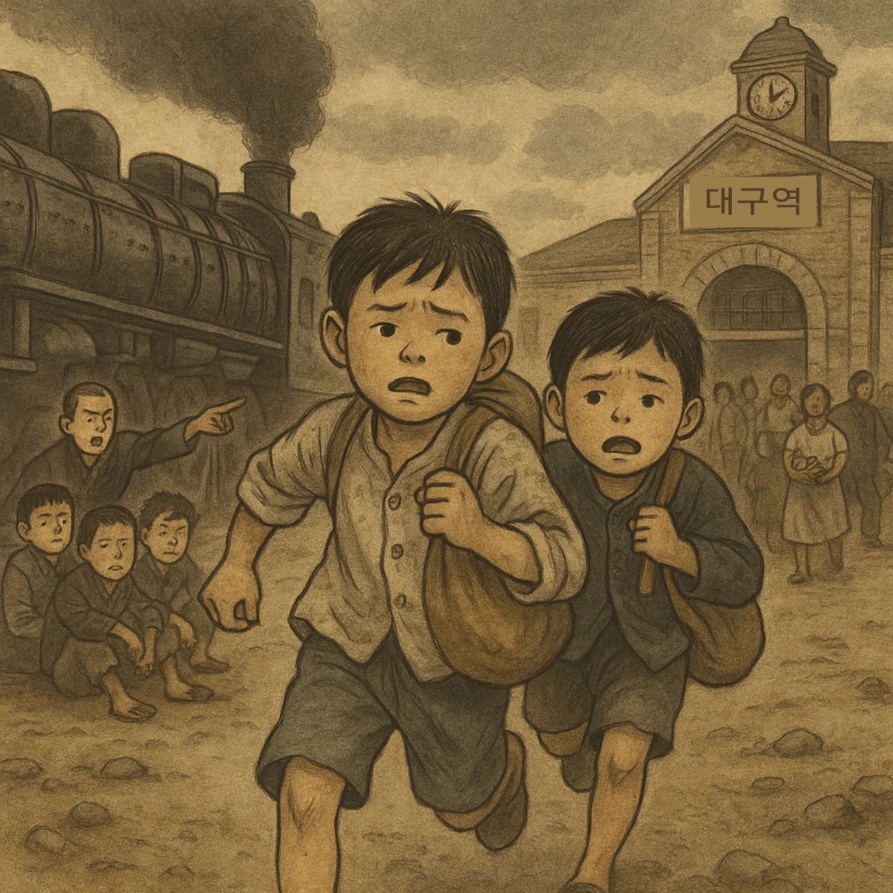 김천역, 밤공기는 축축하고 배고픔은 날마다 깊어졌다. 배고픔은 그렇게 아이들의 숨을 조여 왔고 이윽고 등을 떠밀기에 이르렀다.