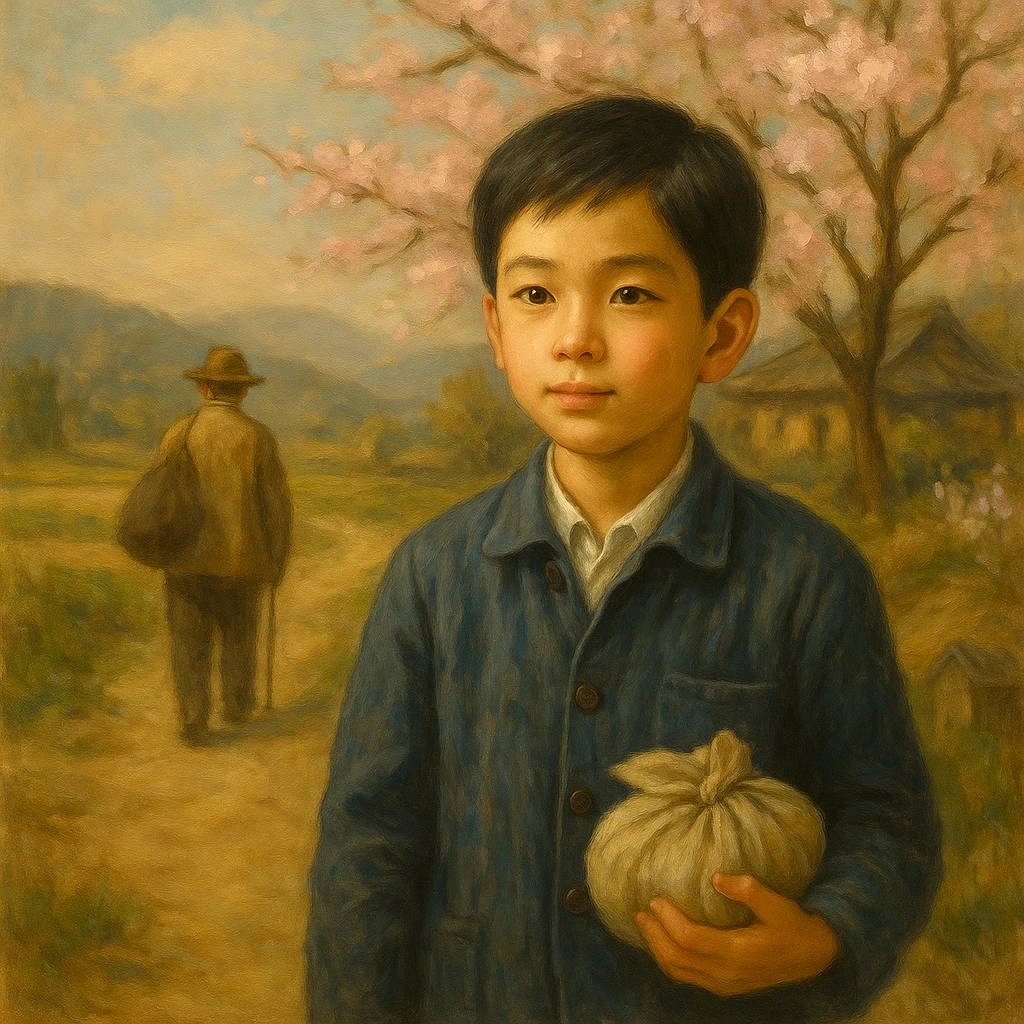 춘식은 새 옷을 입고 손에 작은 보자기를 쥐고 그를 따라가고 있었다.