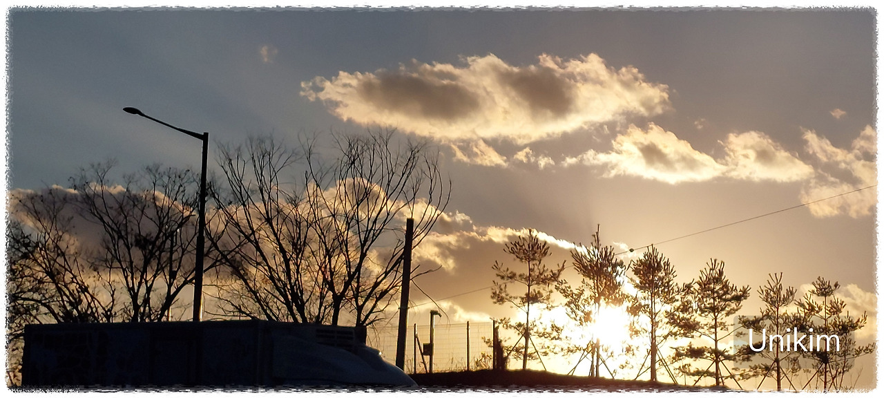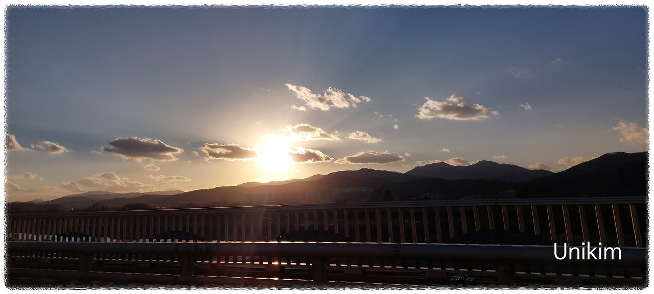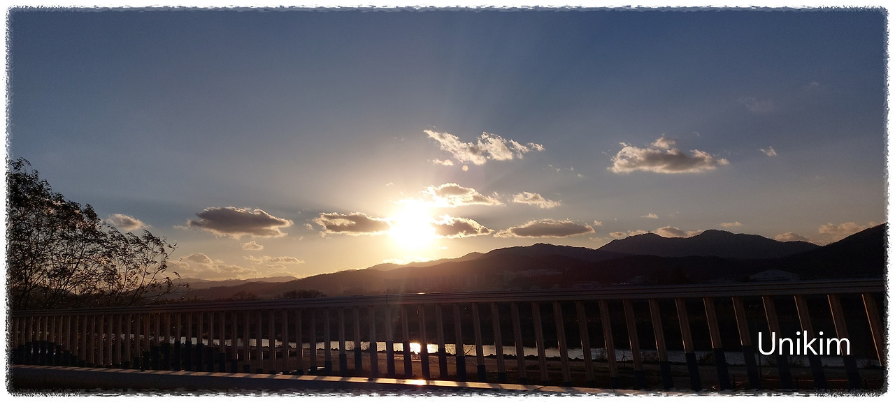 그 빛나던 석양과 즐비하게 늘어서 있던 구름이들이 너무나 인상적이어서 내 작은 핸드폰 속 카메라로 담아 보았다.