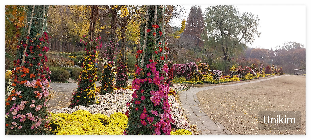 그 사이사이에 잘 피어있는 색색의 국화가 은은한 향기를 자아냈으며
