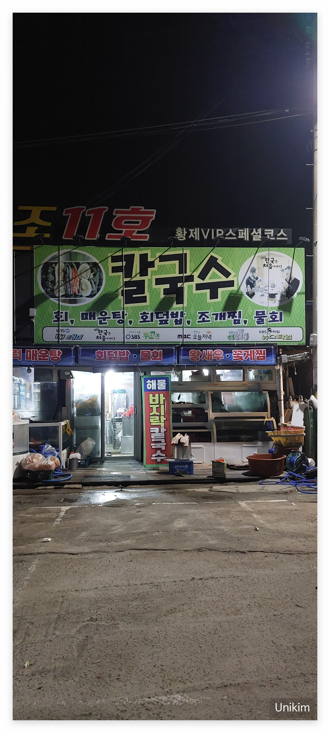 잠시 그리 바닷가에 머물다 인근 칼국수 맛집을 찾아갔다.