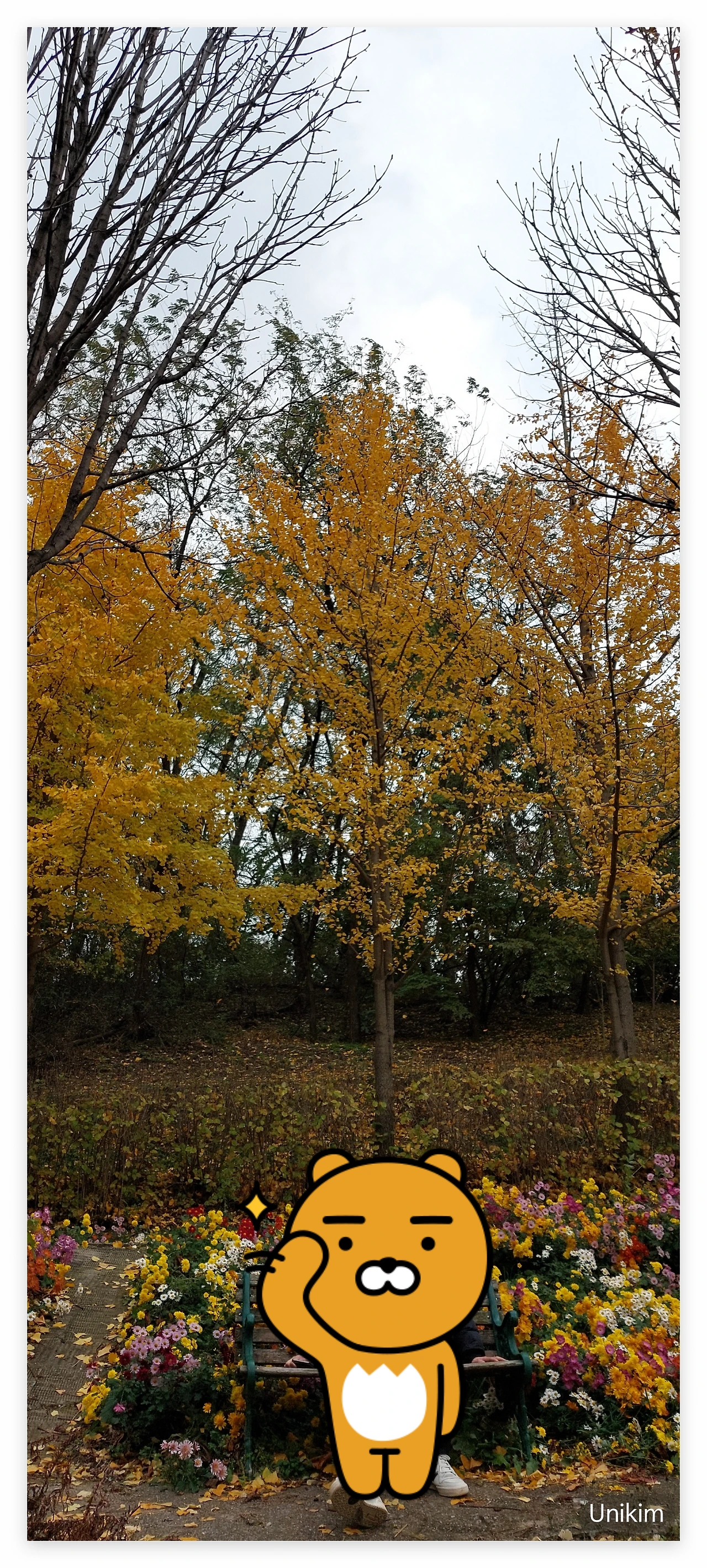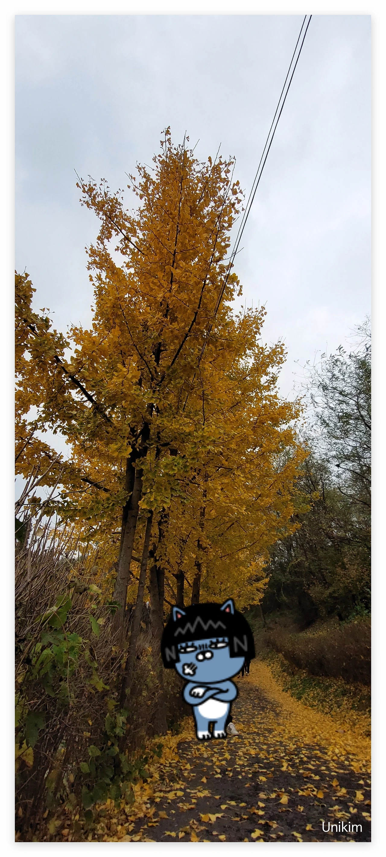 노랗게 물든 노란 단풍잎이 너무나 사랑스럽다.