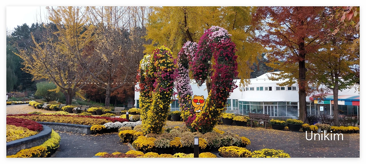 식물원은 단풍 진 나무들과 국화들로 그득하였다.
