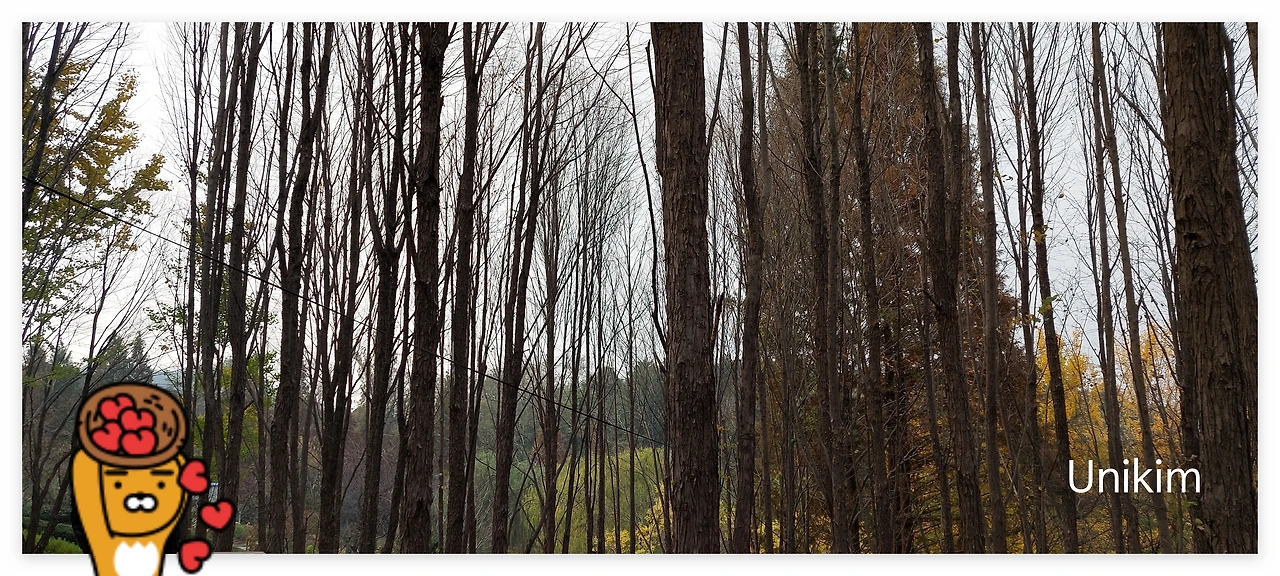 쭉쭉 뻗은 나무 사이로 걸으니 우리의 마음도 바르고 곧아지는 것만 같았다.