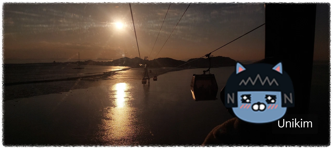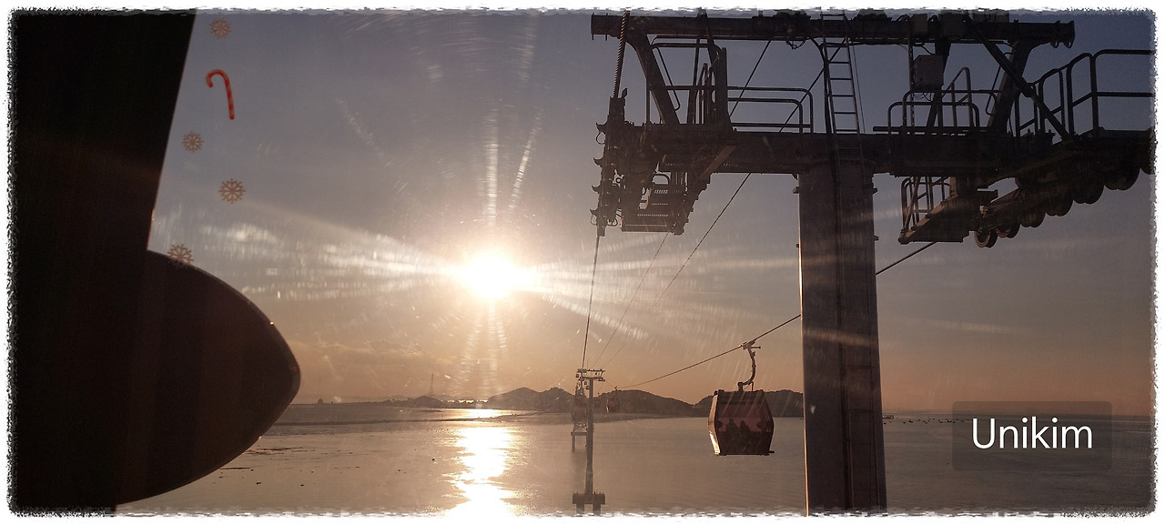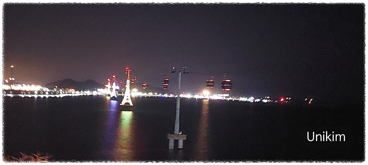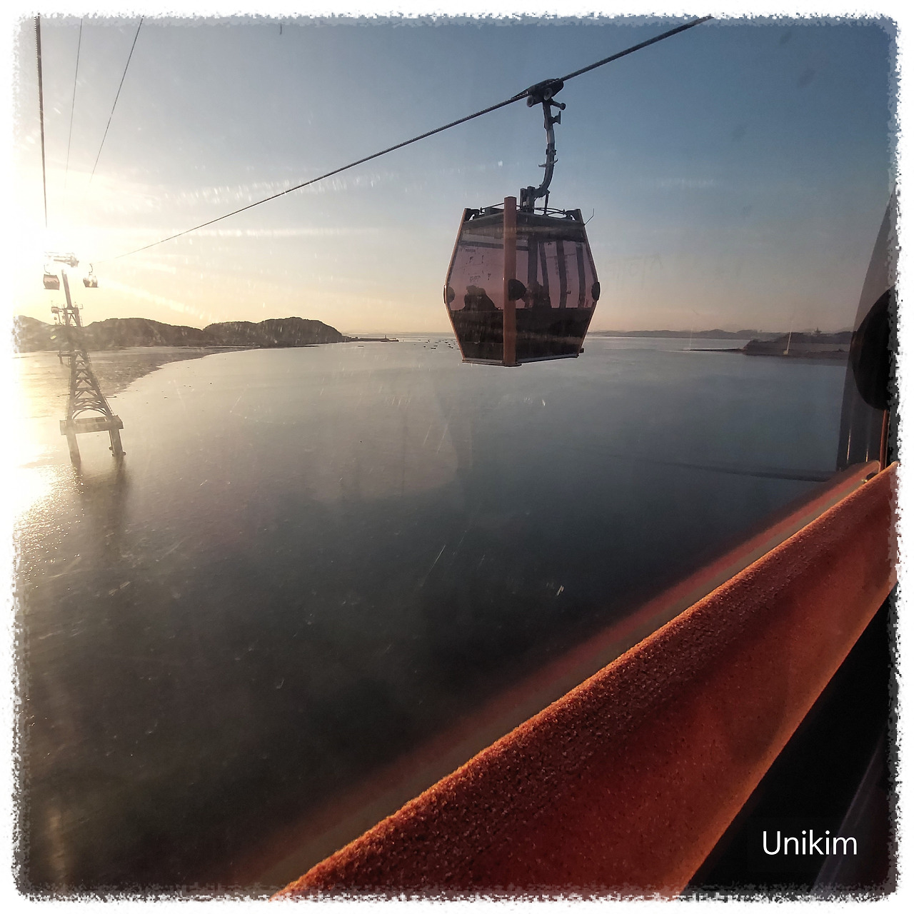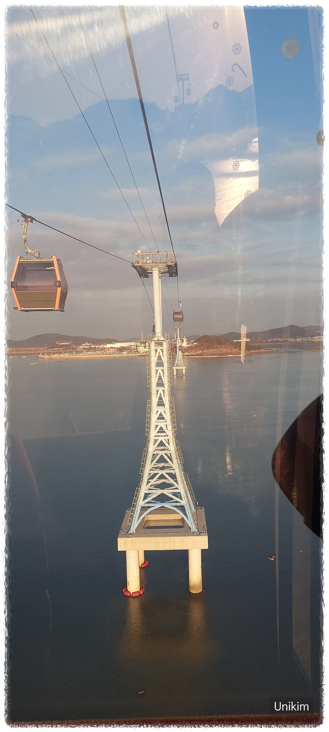 이 케이블카는 우리나라에서 가장 긴 해상 케이블카라고 한다.