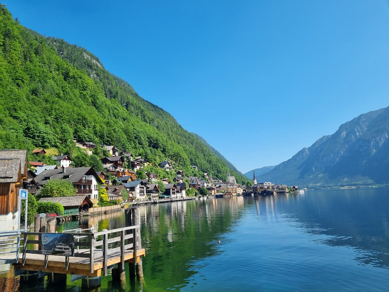 도착 첫날 아침 일찍 호텔을 나와 할슈타트로 출발한다. 강원도 정선 같은 산길에, 사이사이 양 떼가 뛰어놀만한 초지가 나타났다 사라지기를 반복한다. 산은 가파르고 험하고 남성적이다. 거의 두 시간이 되어서야 깊은 산속에 이런 호수가 있을까 싶은 크고 잔잔한 호수와 그림 같은 마을이 나타난다. 할슈타트다. 구석구석 돌아봐도 1시간도 안 걸릴 이 작은 마을은 요정이나 난쟁이가 나올 법한 이야기 속 마을 같다. 이리저리 인증 사진을 찍고 뜨거워진 햇볕을 피할 겸 점심도 먹을 겸 음식점을 찾는다. 점심으론 슈니첼을 먹었는데 같이 나온 잼과 애플파이가 일품이다.