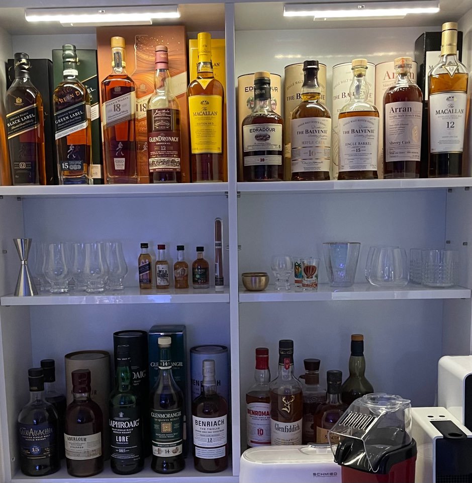 반쯤 차있는 술병들이 많을 걸 보니 꽤 즐기나 보다.