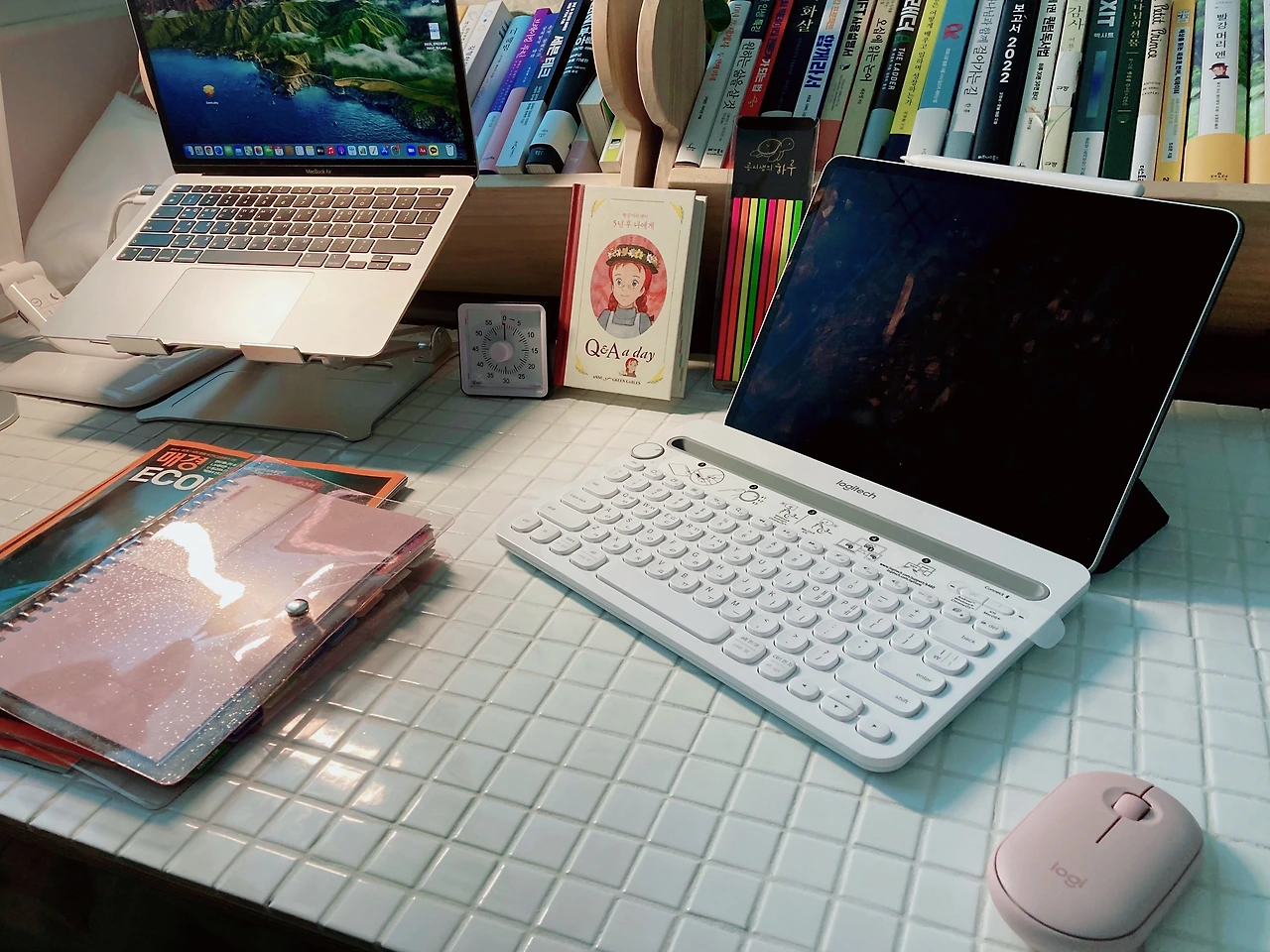 제가 타일을 너무 좋아해서 책상도 타일로..