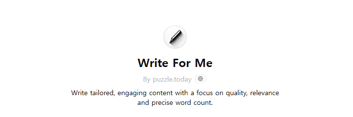 첫 번째로 소개할 GPTs는 바로 'Write For Me'다. Write For Me는 목적에 부합하는 글쓰기에 특화된 GPT로, 주제, 글의 품질, 분량 등의 요청에 맞게 글을 작성해 주는 기능을 가지고 있다. 마케터에게 글쓰기는 광범위하게 사용되고 필수적이다. 이때 Write For Me를 활용하면 목적에 부합하는 완성도 있는 글쓰기에 도움을 받을 수 있다.