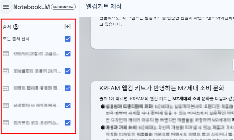 저는 실제로 브랜드 마케터로 일하며, 신규 고객을 위한 웰컴키트 기획 제작 업무를 담당하고 있는데요. 이때 다음과 같은 방식으로 노트북LM을 유용하게 활용하고 있습니다.