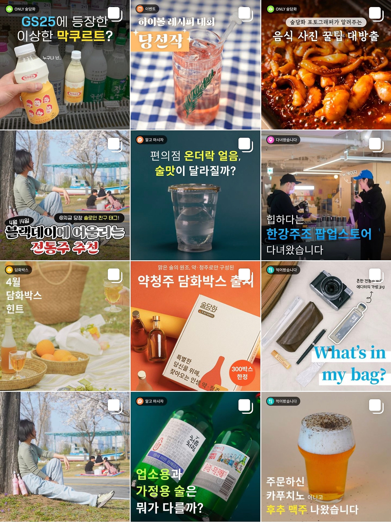 내가 전통주 취미를 가지게 된 데에는 술담화의 기여도가 크다. 술담화는 전통주 구독 및 판매 브랜드다. 감각적인 패키지와 브랜드 UXUI, MZ의 니즈를 저격하는 소재와 트렌디한 톤앤매너의 인스타그램, 술담화 구성원들의 전통주에 대한 진정성이 드러나는 뉴스레터 등, 전통주에 대한 일관성 있는 모든 것들이 온라인 전통주 구독 서비스와 만나 시너지를 내며, 우리 사회에서 전통주를 조금 더 트렌디하고 대중적으로 만드는 데 한몫하는 듯하다. 참고로 광고 아님.