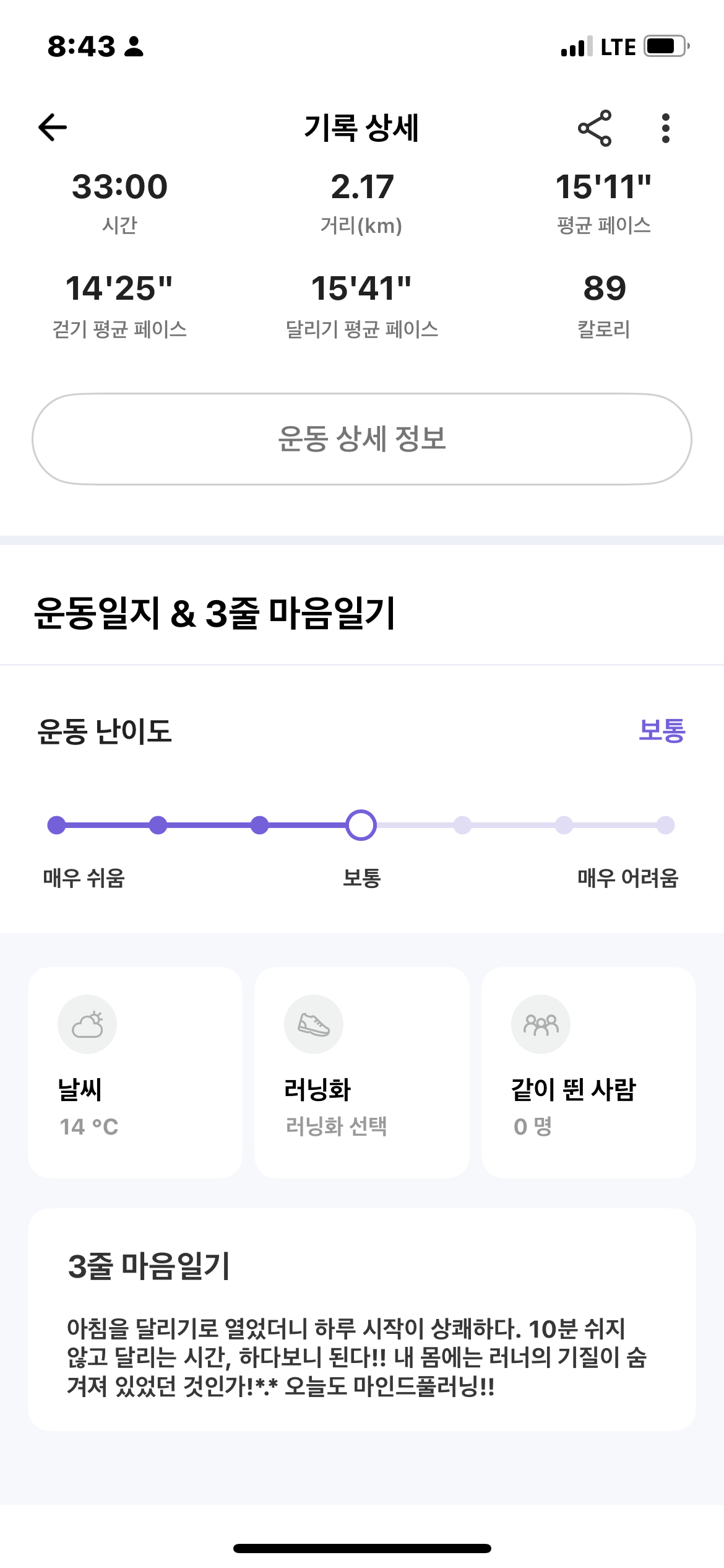 그저 나의 호흡, 자세에 집중할 뿐이다. 괴롭고 고통스러워서 그만두고 싶은 것이 아니라 즐겁고 신나서 계속 달리고 싶도록 동기부여 한다. 매일 아침 나에게 힘이 되는 달리기, 어제보다 조금 더 잘하고 있는 나. 자신을 아끼고 사랑하게 하는 달리기를 하고 있다. 처음에는 3분, 5분, 7분, 지금은 10분을 쉬지 않고 달린다. 그러다 보면 30분을 쉬지 않고 달리는 날도 오겠지. 한계가 어디인지를 깨닫게 되겠지.