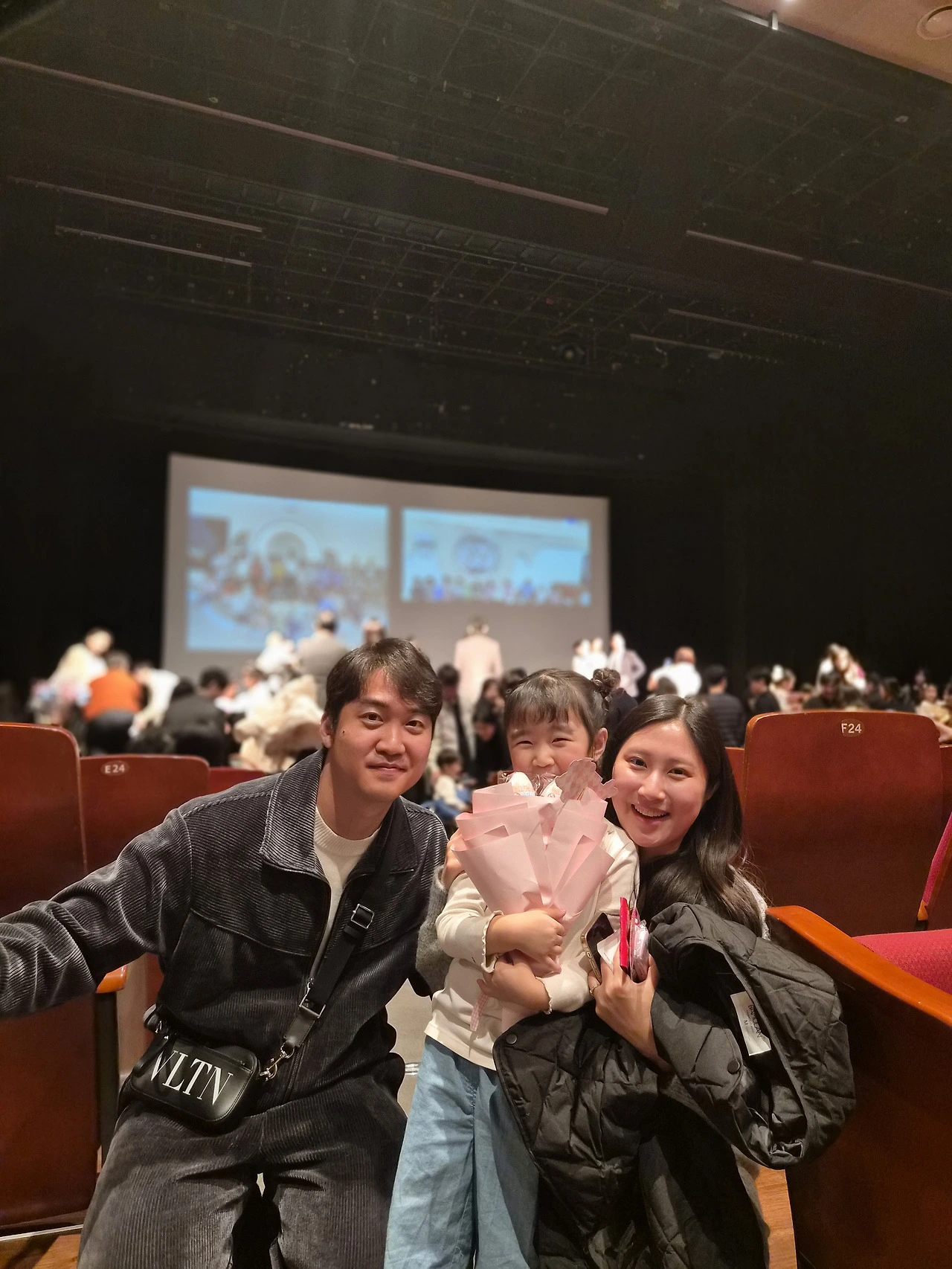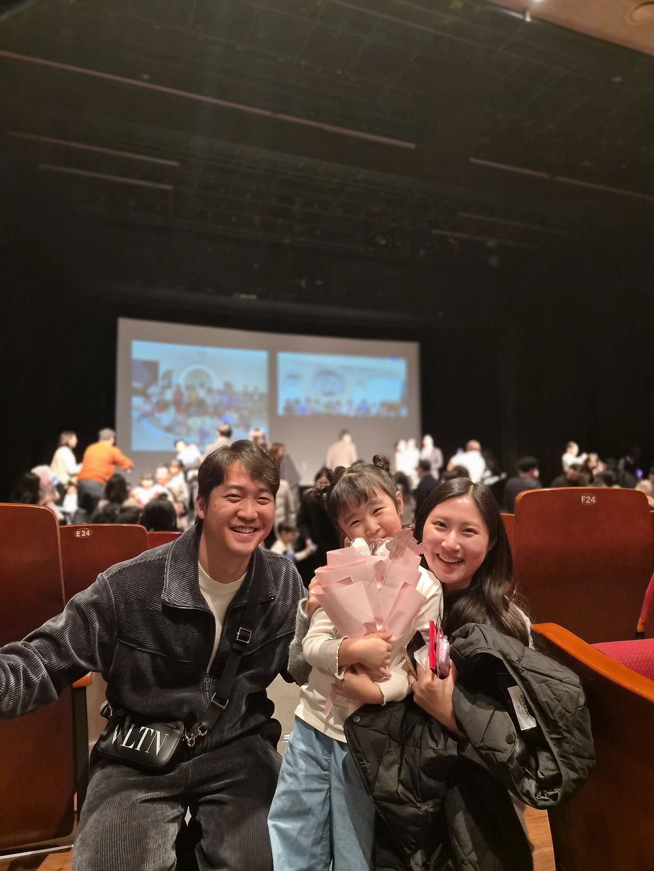 이서는 앉아서 펜 잡고 공부하는 걸 그다지 좋아하진 않지만 무대 위에서는 외운 대로 척척 해내며 꽤나 강한 집중력을 보여줬다. 오늘은 우리 이서의 숨겨진 달란트를 본 하루였다. 게다가, 멀리서 가족처럼 지내는 선주 언니와 석겸이도 와주었다. 이서에게는 ‘딸기 이모’와 ‘나무 삼촌’이다. 그들이 오자 이서는 친구들에게 자랑하느라 정신이 없었다. “우리 이모 왔어! 우리 삼촌도 왔어!!” 이서의 마음도 그들 덕분에 더 가득 찼겠지.