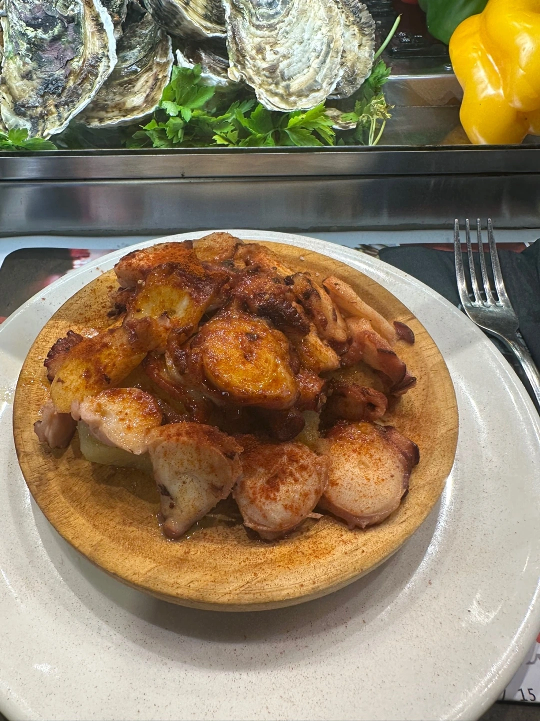 개인적으로 난 투어 여행을 좋아하지 않는다. 뭔가 구속당하는 느낌이 들기도 하고 선택권이 제한되는 이유 때문이다. 바르셀로나에 오면 가우디 투어는 꼭 해봐야 한다는데 내적 갈등이 생겼다. 외로우니까... 그리고 설명이 많이 필요하니까... 마이리얼트립 앱에서 가우디 오전 반일 투어 예약을 했고(바로 다음날인데 예약이 가능하다) 저녁은 구글맵을 통해 동네 타파스 바에서 간단하게 해결했다. 역시 동네 맛집이 최고 ! 소 내장을 토마토 소스에 볶은 요리와 한치 구이, 화이트 와인을 한 잔 했다.