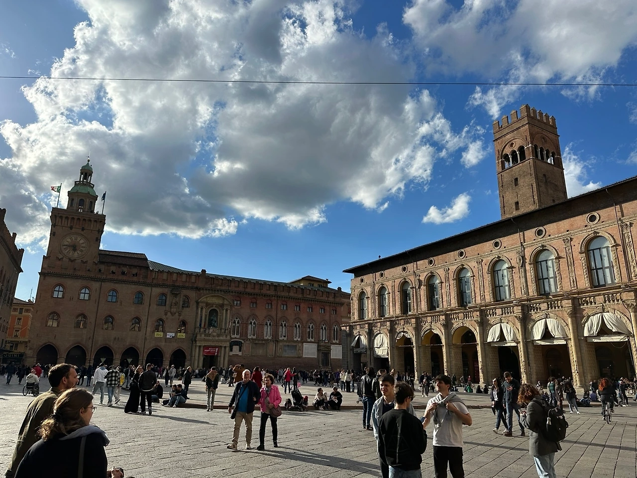 볼로냐의 상징 두개의 탑이 위치한 마죠레 광장(Piazza Maggiore)으로 향한다. 역사 깊은 교육의 도시답게 (전세계 최초의 대학이 볼로냐 대학이라고한다) 마죠레 광장 중심으로 멋진 건축물들을 만나볼 수 있었으며 로마, 피렌체 만큼이나 중심가에는 엄청난 인파가 있었다.