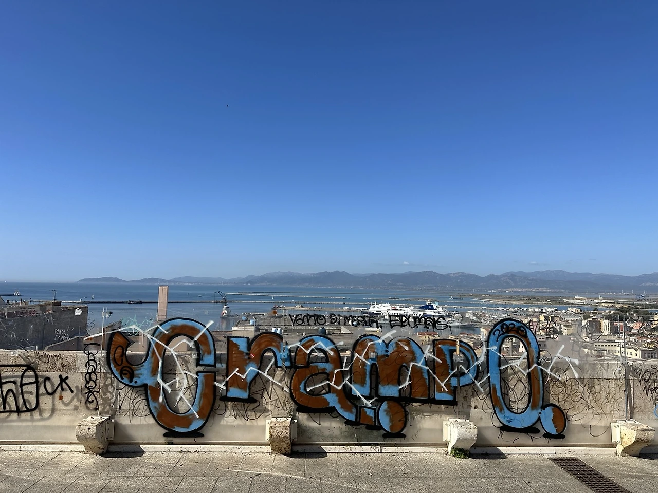 칼리아리 시내를 둘러보았다. 언덕에 마을이 형성되어 한참을 걸어 올라가야 했다. 주변에 평지도 엄청 많은데 굳이 산에다가 도시를 만든 이유가 있을까(?) 아마도 터전을 지키기 위한 과거의 노력이었을까 생각해 본다. 시내에는 곳곳에 멋진 유적지들도 있고 골목골목 이색적인 풍경이 나타난다. 구름 한 점 없는 멋진 날씨가 이를 더 빛나게 만들어 주는 것 같았다.