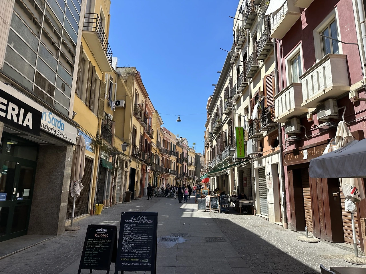 칼리아리 시내에는 맛있는 식당이 꽤나 검색된다. 육류를 기본으로 하는 식당부터 해산물을 전문으로 하는 식당, 피자집들이 특히나 많다. 난 가볍게 재료, 면, 소스까지 고르면 바로 조리해주는 저렴한 파스타집을 선택했다. 저렇게나 많이 주는데 물까지 8유로에 한 끼 합리적으로 해결했다 ^^; 현재까지 사르데냐의 이미지는 너무 좋다. 평화롭고 조용하고 일단 안전하다.