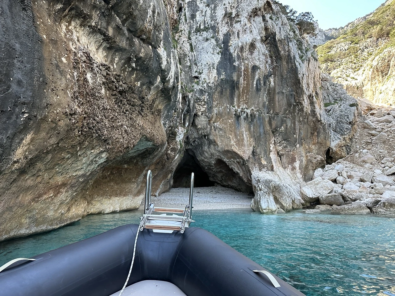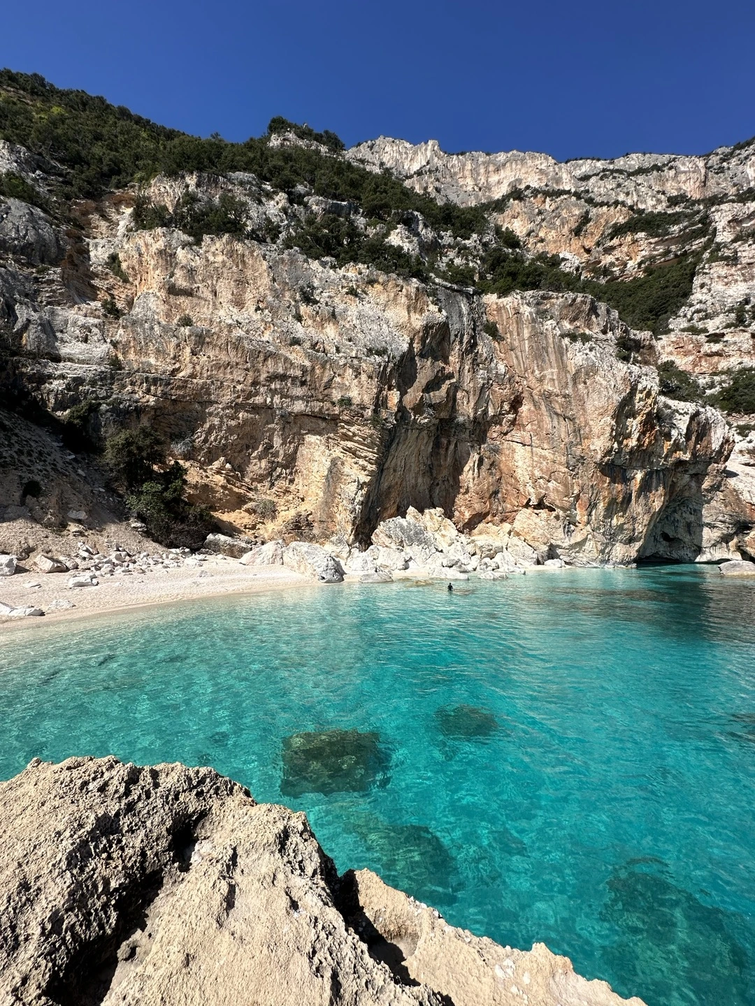 다음날은 사진속 동화같은 장소 ‘마리올루 해변(Cala Mariolu)’ 을 가기 위해 해수욕에 필요한 것들을 실고 차를 몰았다. 약 30분 가다보니 산 중턱에 위치한 마을 하나를 지나게 되었고 그 마을을 넘어야 하는데 더 이상 지나갈 수 없는 막다른 길을 마주해야만 했다. 우리 구글 선생님이 이럴리가 없는데... 차를 세워 확인 해보니 해변가에서 상당히 떨어진 산을 목적지로 가르키고 있었다. 결론은 차로 갈 수 없는 곳이었다. 산으로 둘러쌓여 있어 2시간 이상의 절벽 하이킹을 시도하거나 배를 통해서만 갈 수 있는 미지의 해변이었다. 그리고 내가 지나간 그 산속의 마을은 그토록 외치던 바우네이(Baunei)라는 마을이었다. 모쪼록 바우네이 마을을 한 번 둘러보게 되었고 카페에 앉아 트립 어드바이저를 통해 다음날 아침에 출발하는 보트 투어를 찾아 예약했다. 보통은 6월부터 한다는데 4월말인 지금도 가능할지는 예약상황 보고 컨펌을 준다고 한다. 덕분에 숙소 근처에 인적이 없는 해변가에서 해수욕을 즐겼다. 날은 더운데 그래도 물은 차다. 수영은 꾹 참고 5분 정도 즐길 수 있었다. 저녁쯤 여행사에서 메일이 왔다. 내일 나까지 세 팀 7명이 채워져 오전에 출발 할 수 있다고 한다. Perfetto!