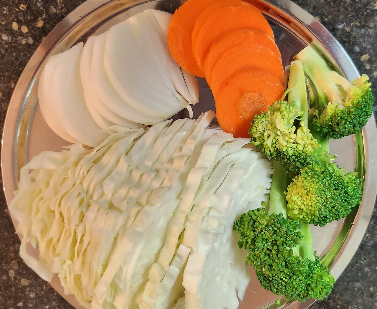 달걀이 익을 동안 양배추, 양파, 당근, 브로콜리를 기호에 맞게 썰어 준비한다.