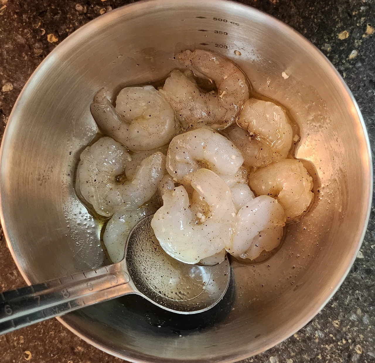 깨끗이 손질한 새우는 올리브유, 소금, 후추에 잠시 재워둔다.