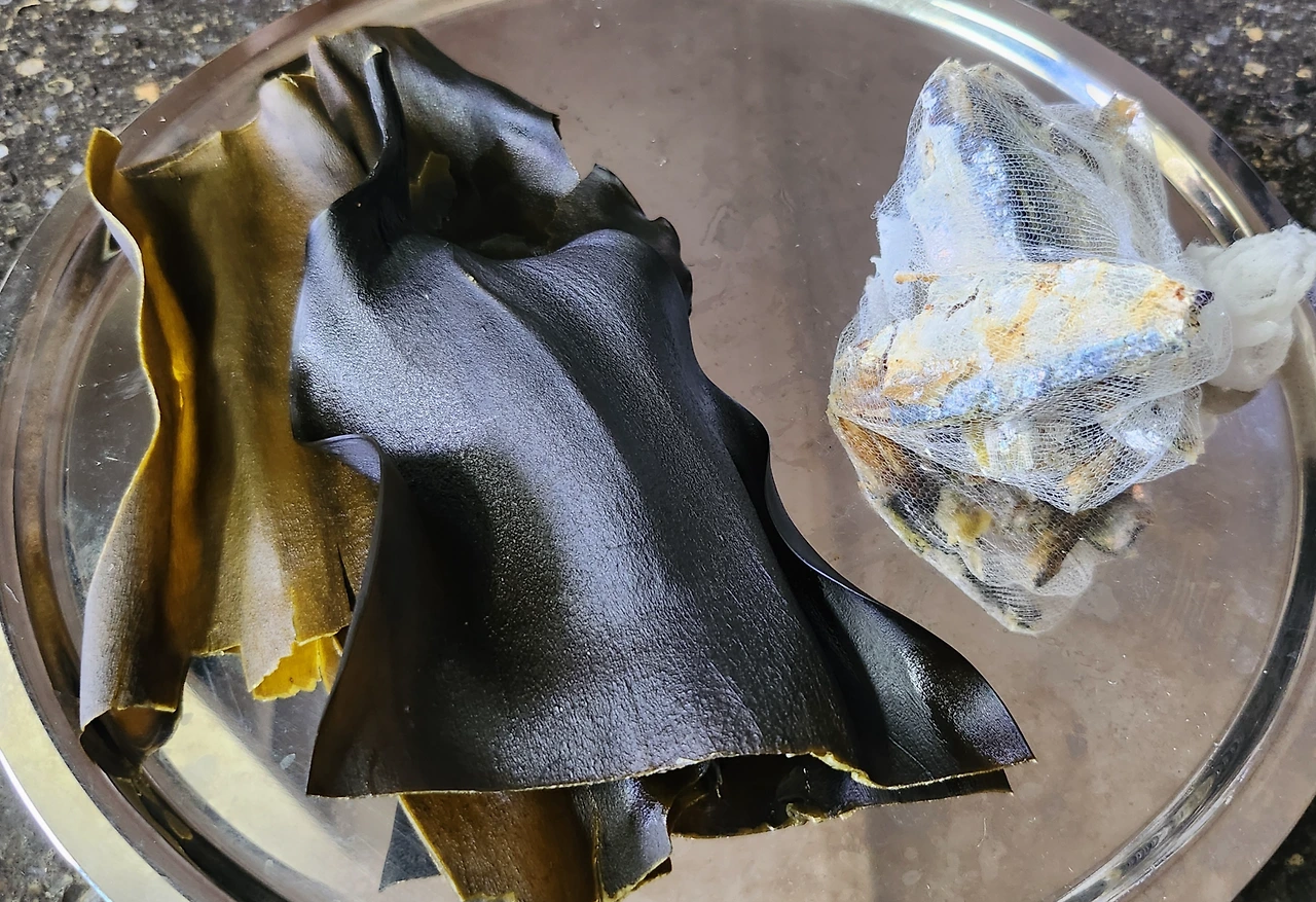 육수를 만들기 위해 다시마와 디포리, 멸치를 준비한다.