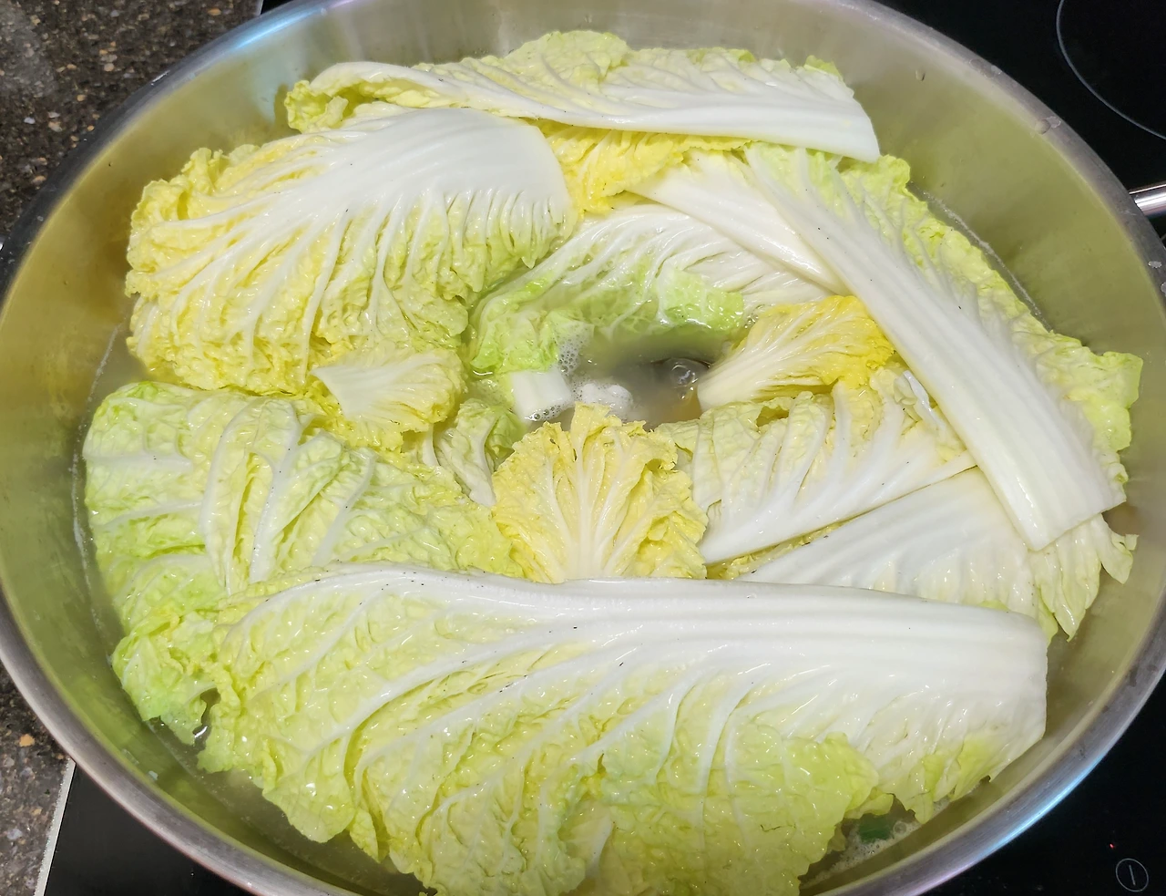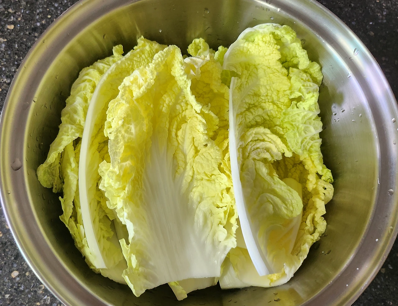 알배추 500g을 소금 4꼬집을 넣고 10분 이상 절인다.