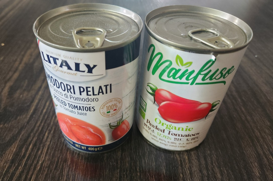 버터 30g, 토마토홀 통조림 2개, 물 1리터, 월계수 잎 3장, 오레가노, 파슬리, 소금, 후추 조금(각자 취양 껏)