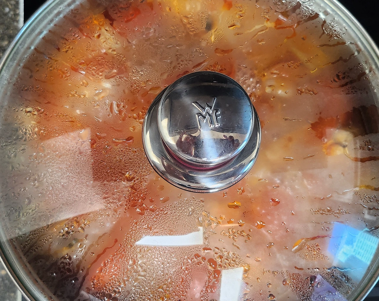 끓은 후 1시간 약불에서 더 끓이고, 파슬리, 소금, 후추로 간을 한다.
