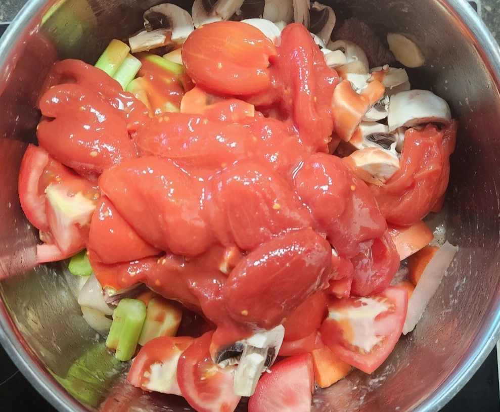 셀러리, 토마토, 양송이버섯을 넣고 볶는다.